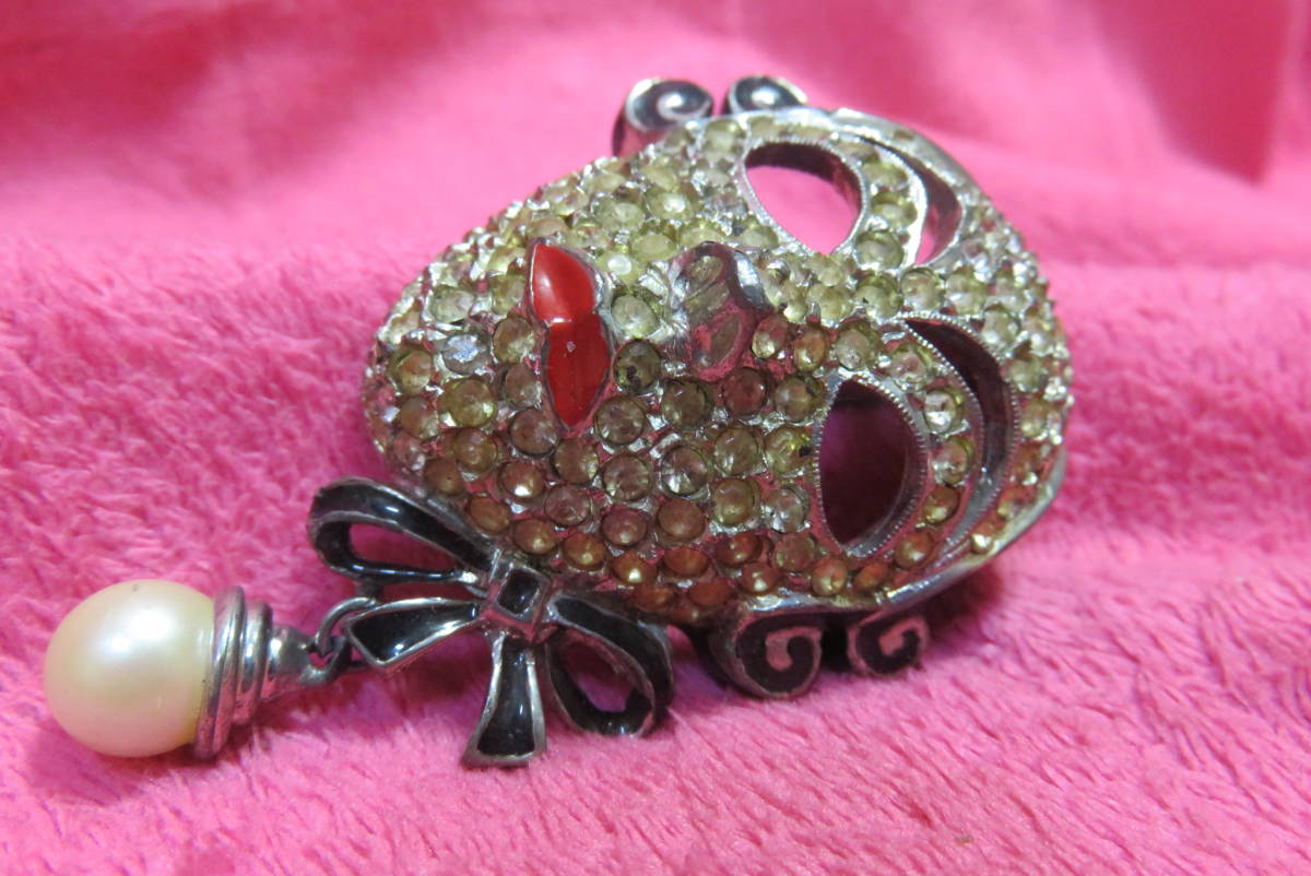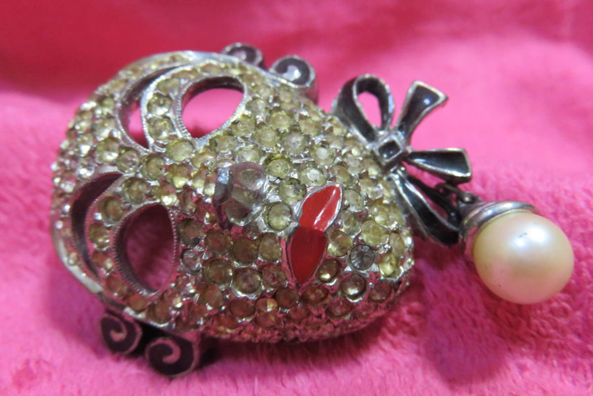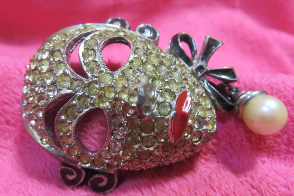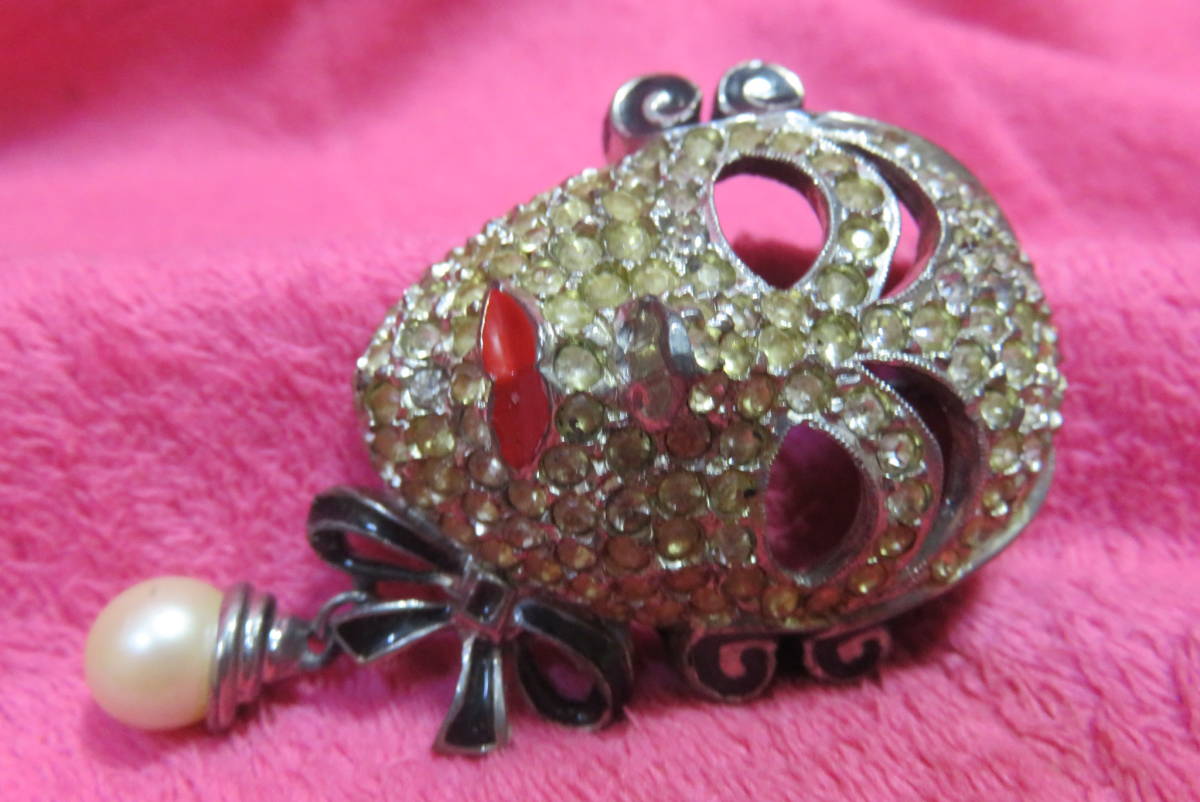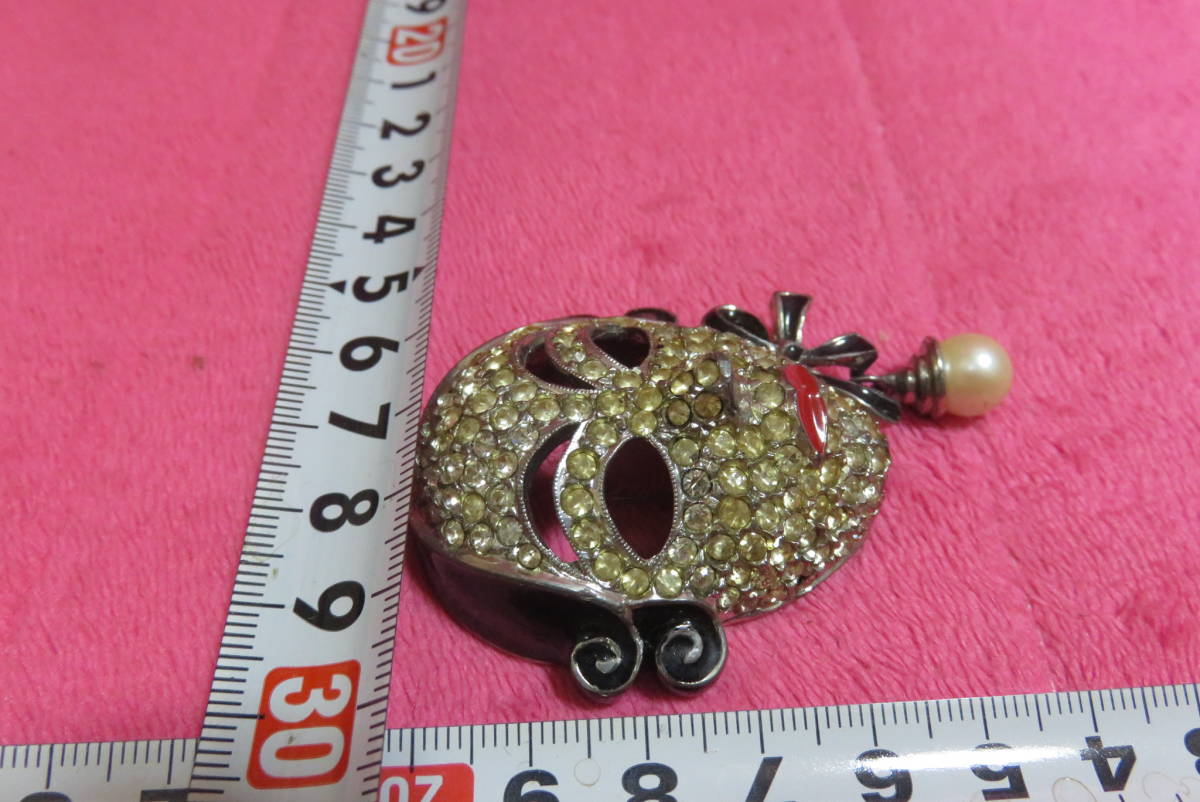 J3101  ブローチ  アンティーク調  ラインストーン  仮面  パール調