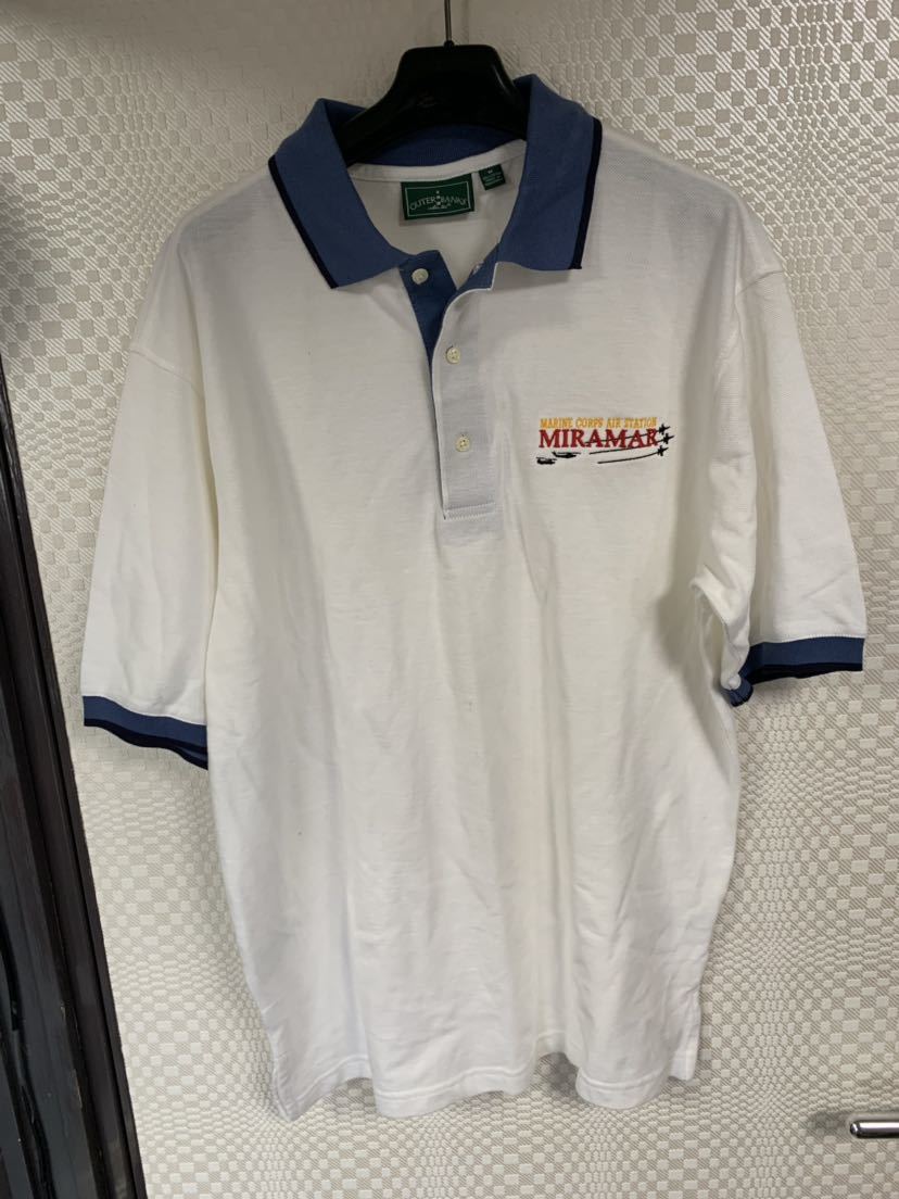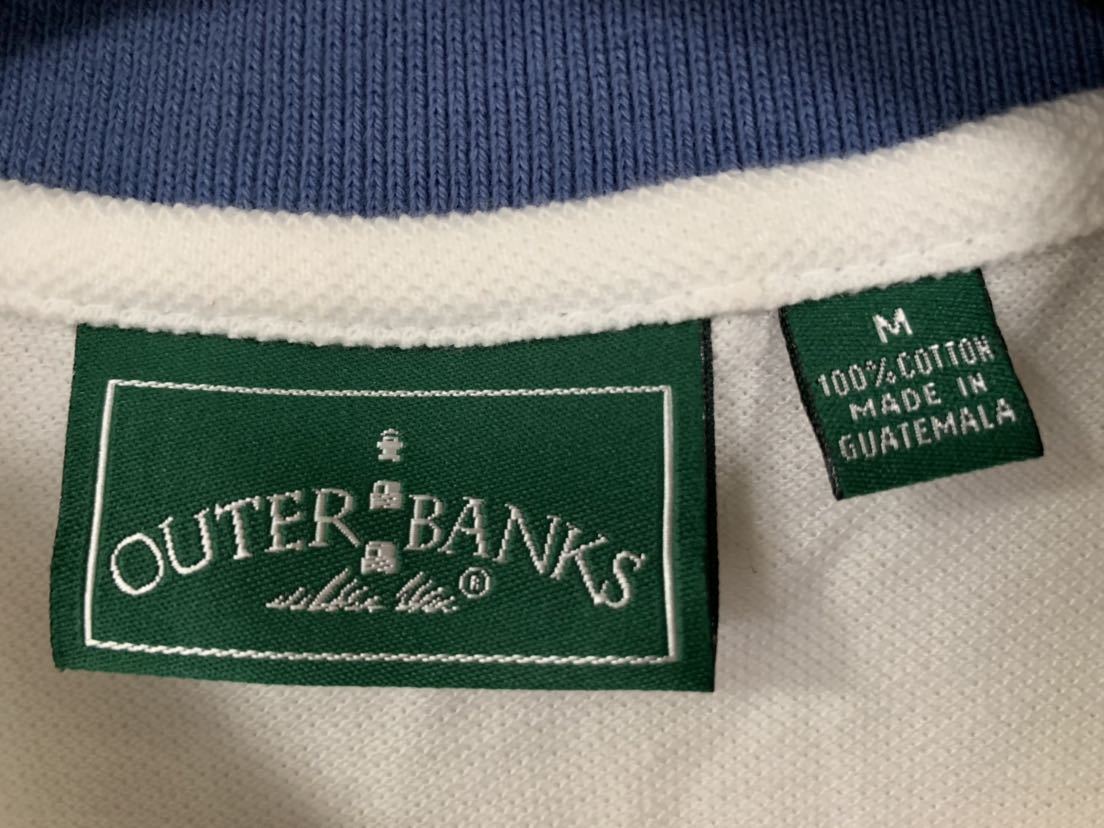 アウターバンクスの半袖ポロシャツです。サイズは海外M表記で日本の X Lくらいです。平置き脇下身幅58着丈76肩幅53センチ位です。