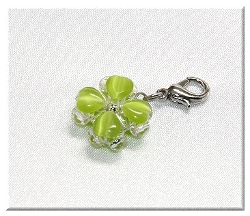♪櫻♪【厳選キャッツアイ】四つ葉クローバーSチャームlg:幸運の四葉。ビーズストラップはファスナーチャーム,キーホルダー等に♪