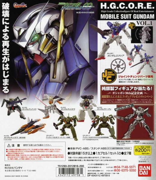 ◆H.G.C.O.R.E.シリーズ 機動戦士ガンダム00 Vol.1…全7種+台紙 (エクシア/ティエレン地上型/他) フィギュア ※HGCORE/ダブルオー/OO