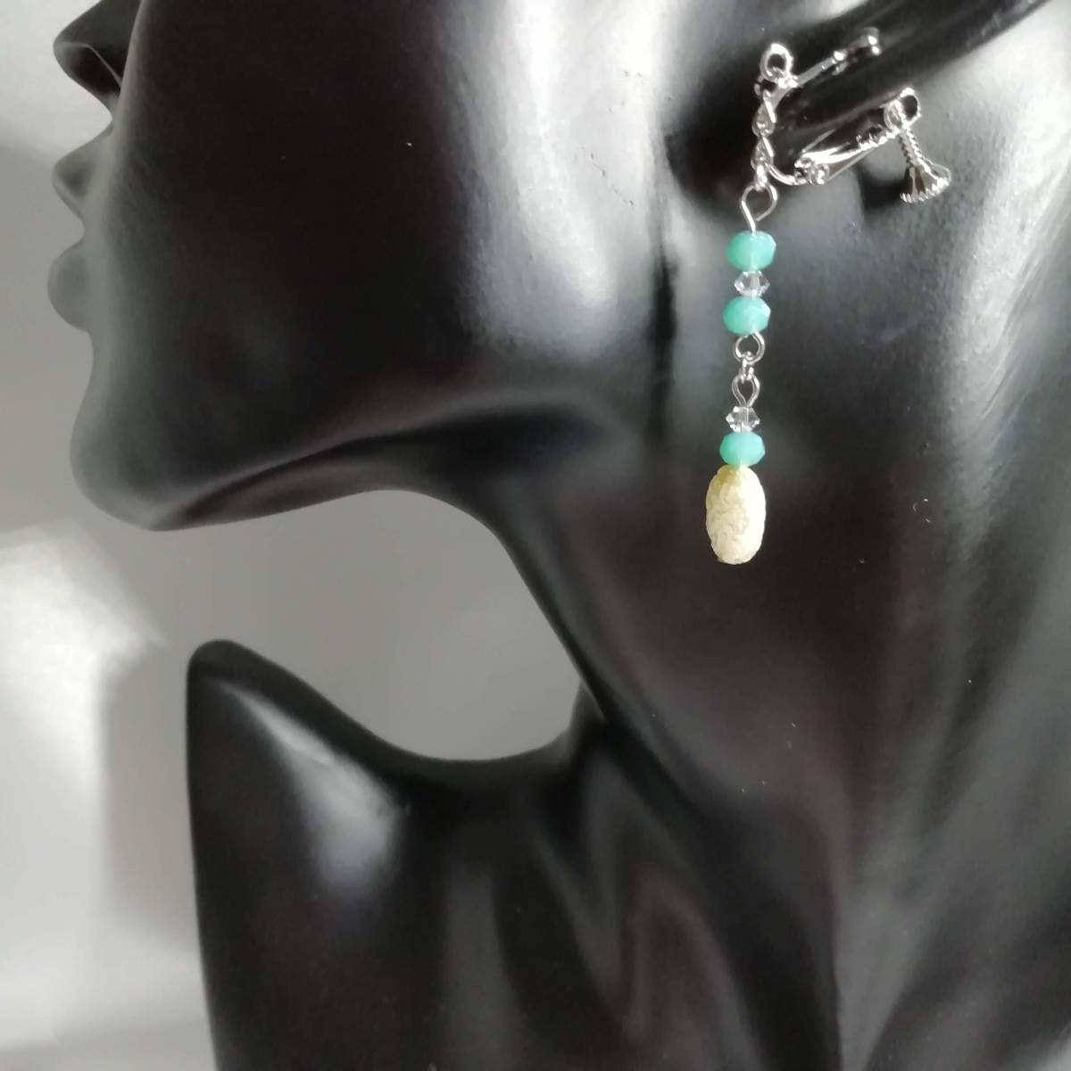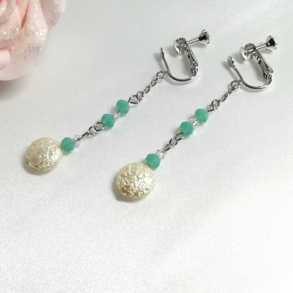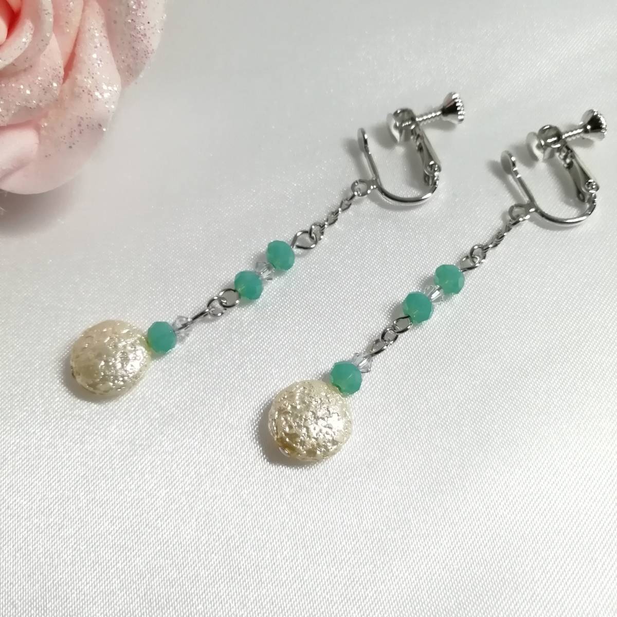 ★商品内容★ パールクリームとオパールグリーンのハンドメイドイヤリング/チェコ・スワロフスキー・上品・清楚・シルバー・ミルクグリーン・クリスタル チェコビーズパールクリームは 表面の砂糖菓子のような仕上がりが特徴的なビーズで、 上品でエレガントな雰囲気を醸し出しています*・.**.・。**.・。*・**。・ オフホワイトと柔らかな色合いのオパールグリーンを シルバーのパーツと組み合わせて清楚な女性らしさを印象付けます*・.**.・。**.・。*・**。・ 普段使いはもちろん、オフィスにも、 お出掛けやオシャレのワンポインにも最適です・。**.・。*・**。・. 【素材】 チェコビーズパールクリーム(チェコ産)10mmx3mm スワロフスキー5328クリスタル(オーストリア製)3mm カットガラスビーズオパールグリーン4mm デザインチェーンシルバー カンより垂れ下がる長さは、約4.7㎝です。 Eー568 ★商品状態★ ・画像と実物の色味が多少異なる場合があります。 ・緩衝材(プチプチ等)を使用し、防水梱包でお届け致します。 ★注意事項★ ***~ご購入前に必ずお読み下さい~*** ***商品について*** *一点一点心を込めて作っておりますが、手作りなため多少の歪み等あるかもしれません。 手作りの味わいと、世界で一つだけの作品とお考えいただければ幸いです。 *デリケートな商品ですので、強く引っ張ったりすると破損する事もあります。 お取り扱いにはご注意ください。 *写真も完璧な色合いの表現にはなっていない場合もあります。 *基本イヤリング金具は跳ね上げ式ネジ付きを使って作成しています。 ご希望によりピアスへの変更も承っております【フックピアスへの変更無料/キャッチピアスへ変更(別途追加料金120円)】 ~ご注文の際にメッセージ欄よりお申し付けください~ 尚、金具変更のご希望が無い場合は、掲載された写真の金具にてお送り致します。 *金属アレルギーへの対応はしておりませんので、ご心配な方はご遠慮下さいますようお願い致します。 *永くご愛用頂くために、ご使用後は柔らかい布等で軽く拭いてください。 ***ご質問について*** *ご購入前にお願い致します。 日中は仕事をしておりますので、ご返事が直ぐに出来ない場合がございます。 出来る限り早い対応を心がけますが、ご了承ください。 また、発送までには、お振込み確認後、翌日の発送を心がけておりますが、仕事の都合により2~3日程かかる場合がございます。(その際にはナビにてご連絡いたします) お急ぎの場合は、極力対応いたしますが、場合によっては対応致しかねる事もあります。ご了承下さいませ。 落札後4日以内にお手続き、ご連絡が無い場合は落札者都合で削除致します。 発送日指定・ご入金の予定が1週間以上先をお考えの方は、入札の前に質問よりご連絡くださいませ。 予めご了承の上、ノークレーム・ノーリターンでお願い致します。 | |||