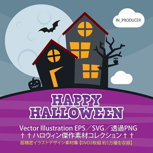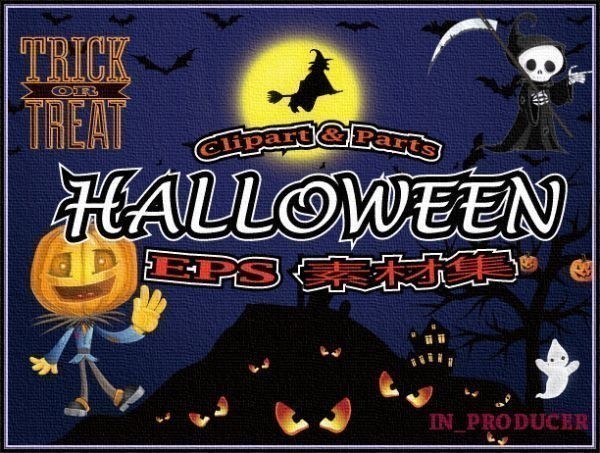 ハロウィンパーティーの飾り付け●魔女/おばけ/コウモリ/ホラー/カボチャ DISC2枚組 限定特価 『ハロウィン素材集』EPS/SVG/PNG/JPG収録
