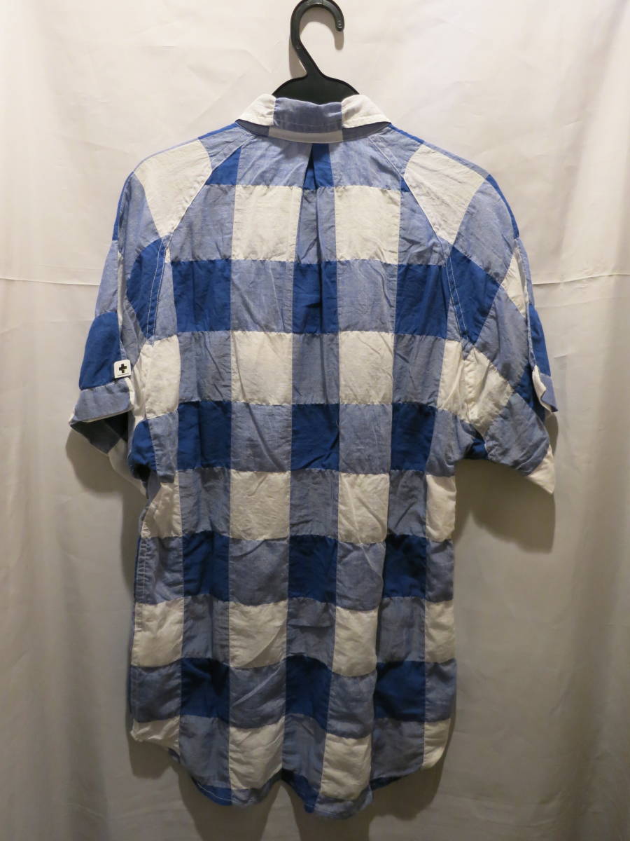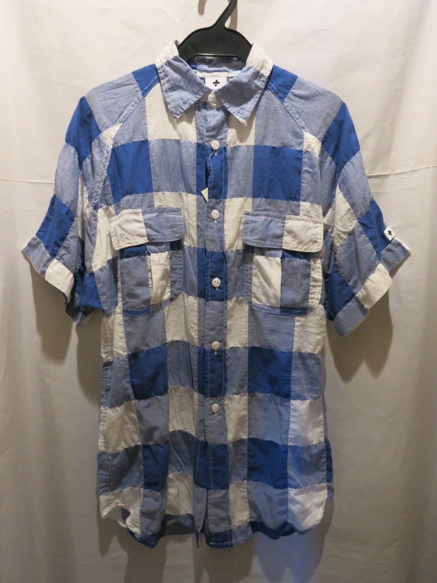 大人気!X-LARGE-(PLUS-L)-半袖シャツになります。カラー(BLU)のサイズ(S)になります。素人寸ですが、肩幅47,幅48,丈72,になります。素人寸ですので、NCNRでお願い致します。