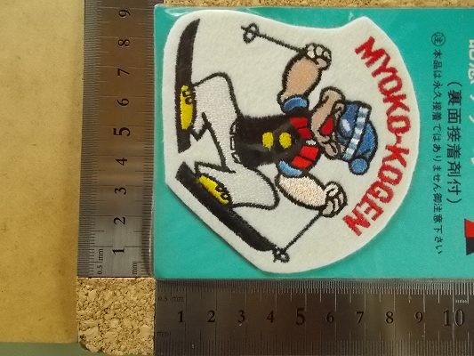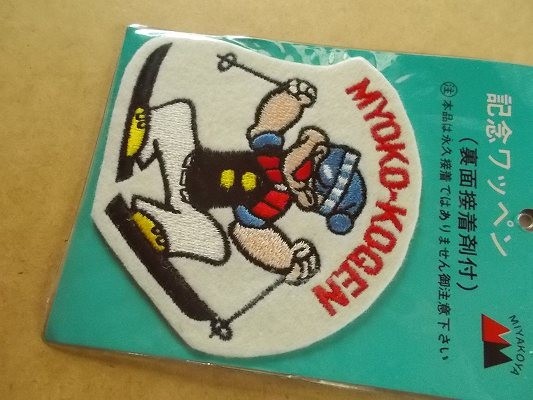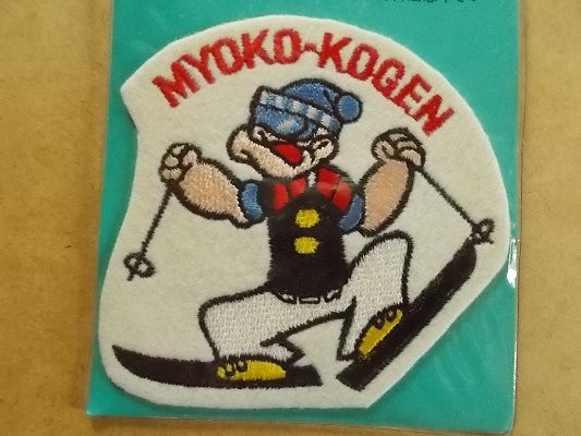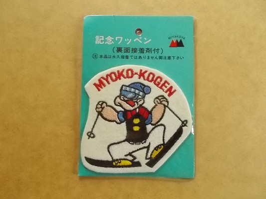 80s スキー 妙高高原 MYOKO KOGEN ポパイ フェルト刺繍ワッペン/新潟県 赤倉 昭和スキー場レトロ雑貨アップリケ旅行 土産 温泉 v119