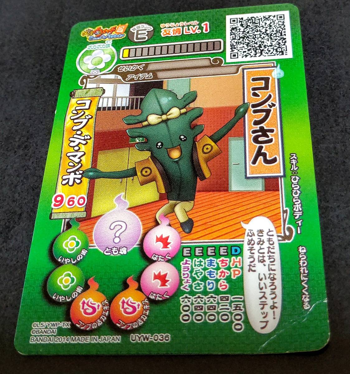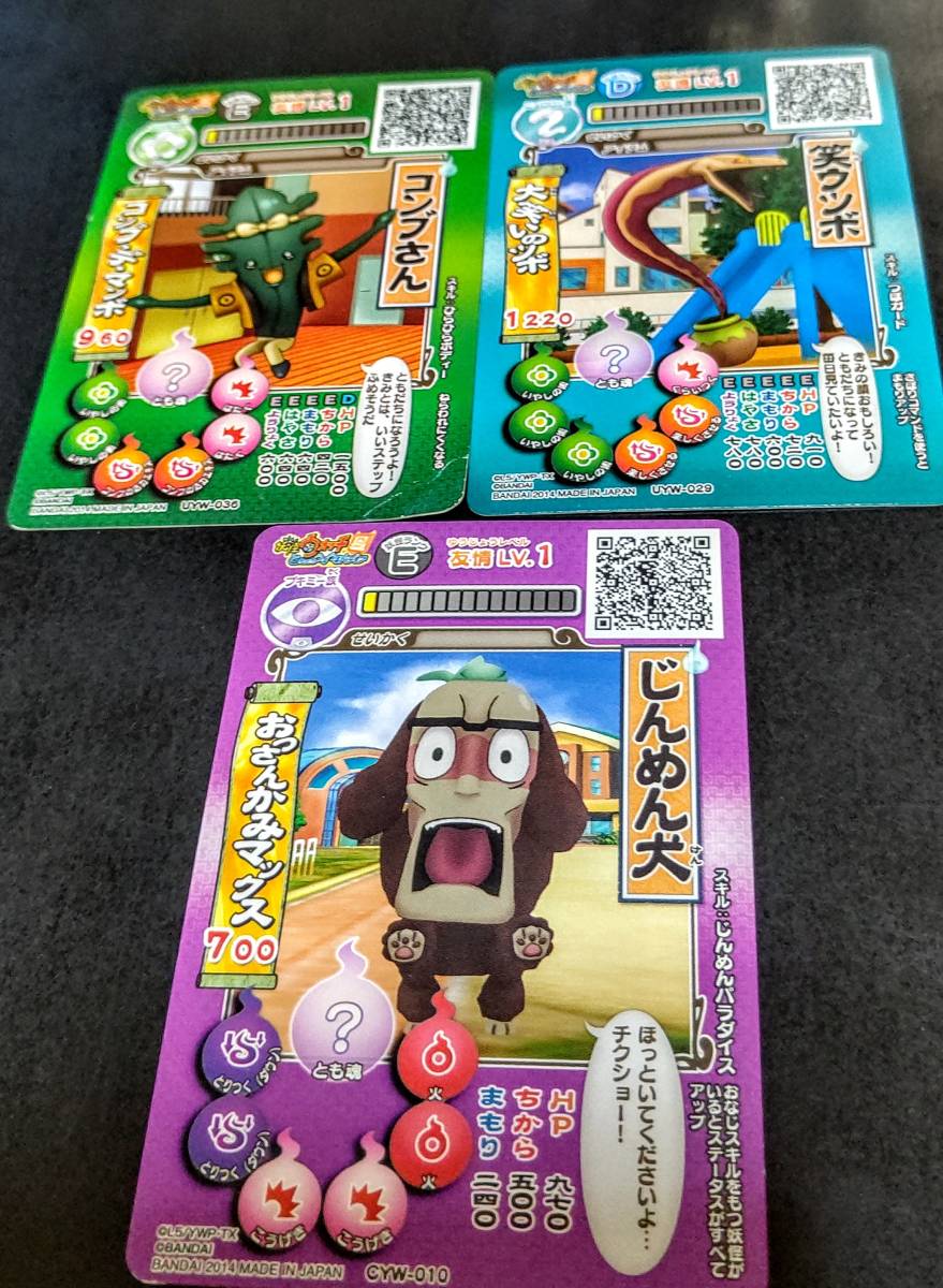 妖怪ウオッチ ウエハースカード。じんめん犬、笑ウツボ、コンブさん 3枚1組セット。
