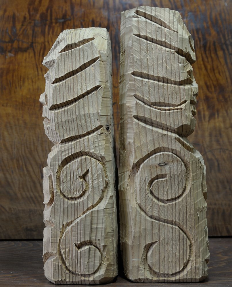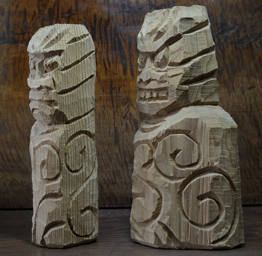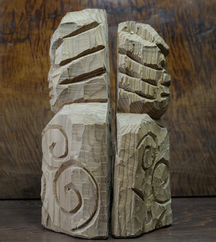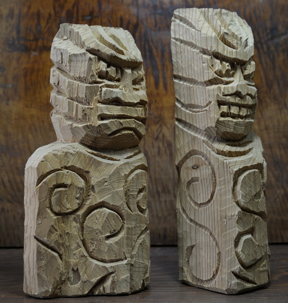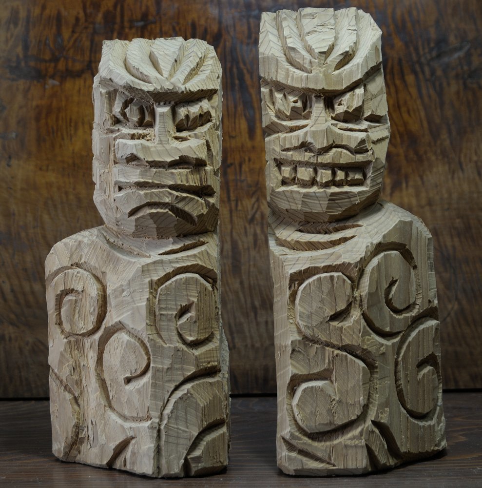 叩き彫 「狛犬」 12036 スギ材 43cm 円空 木喰