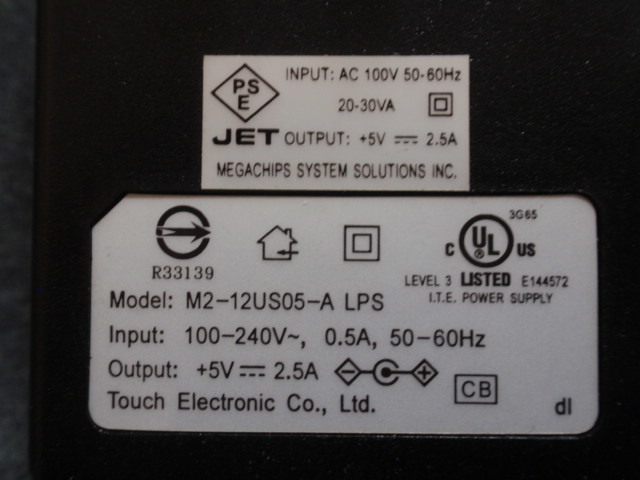 Touch ACアダプタ M2-12US05-A LPS (5V 2.5A) 送料230円から