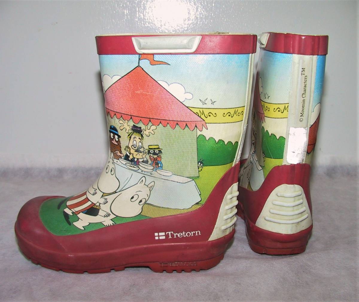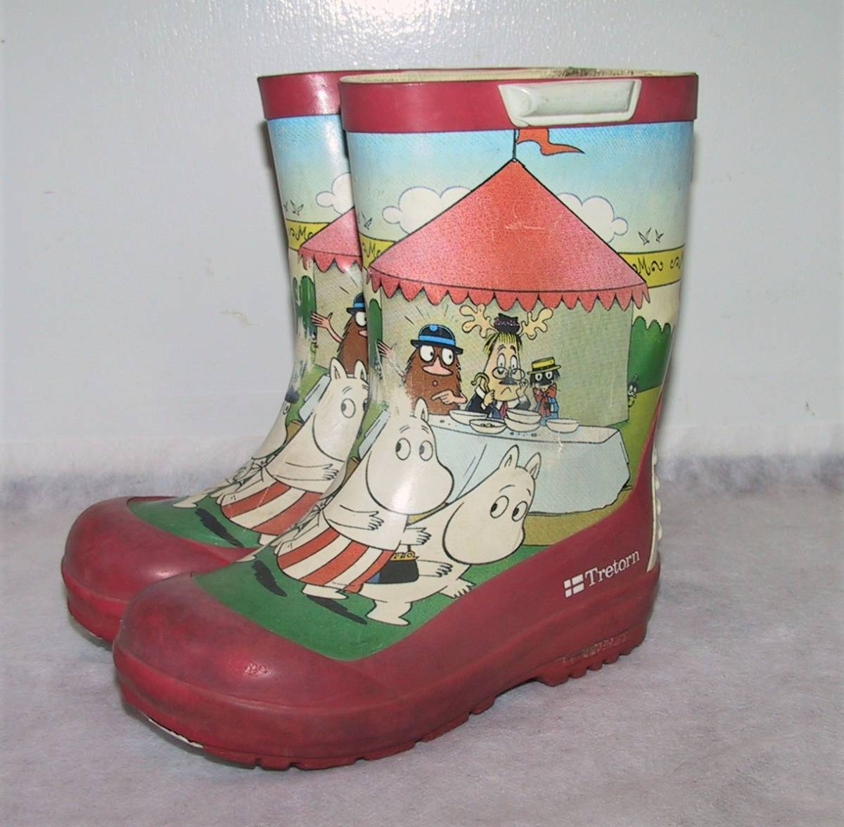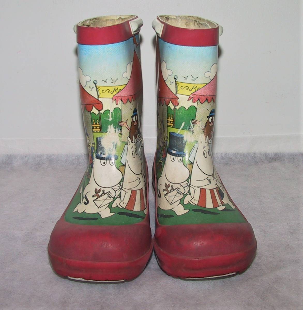 トレトン TRETORNxムーミン Moomin Charactersコラボの子供用レインシューズです。北欧フィンランドで購入しました。子供が気に入って使用していましたので、傷、汚れありますが、まだまだご使用頂けます(外側の破れ部分は補修済です)。子供の名前はアウトソールサイズ表記の下に記載あります。日本では入手しにくいお品になります。サイズ:26/約16㎝、アウトソール最大幅7.5㎝、高さ19㎝、筒周り33㎝。送料は定形外920円、ゆうパック1150円(北海道1740円、沖縄1450円)になります。値下げしました!