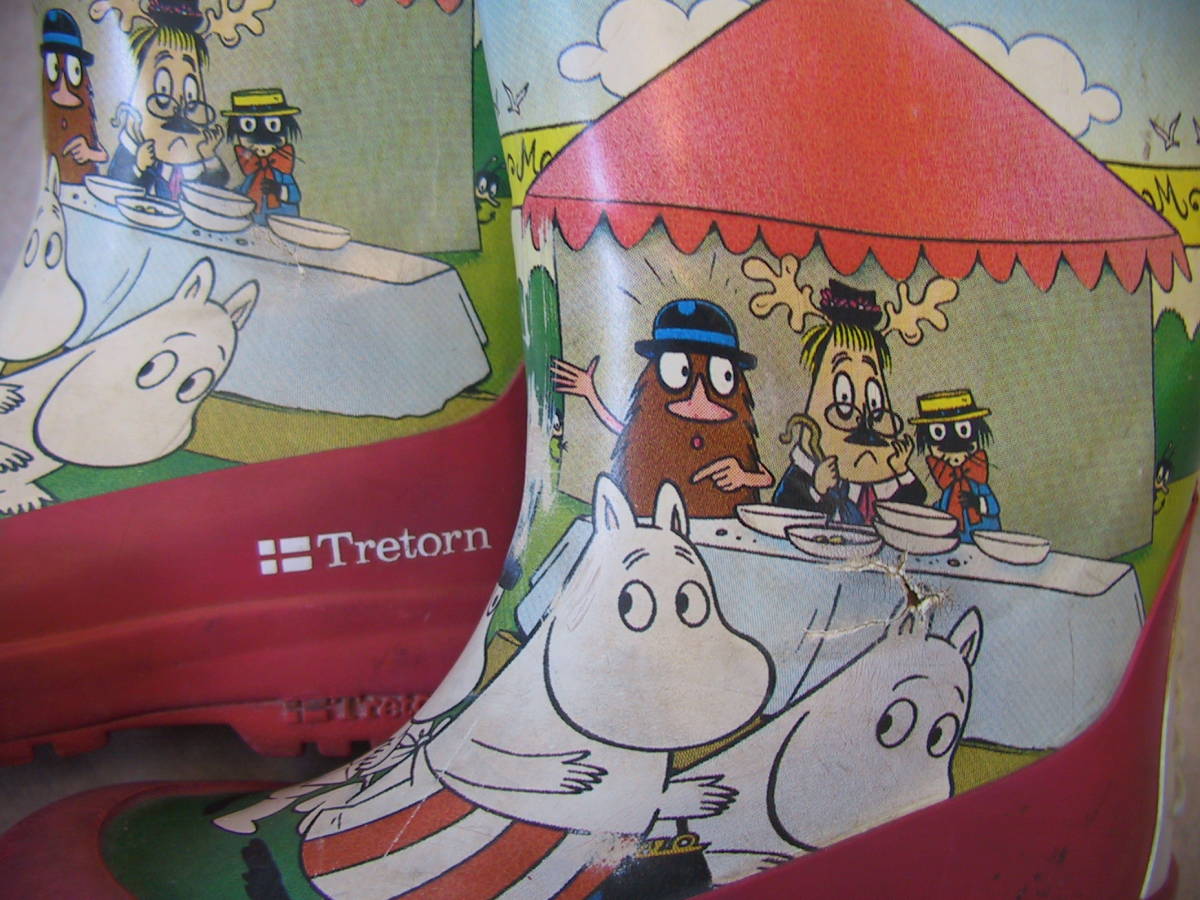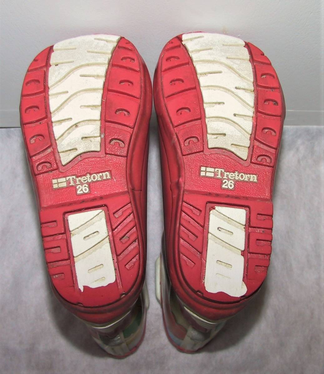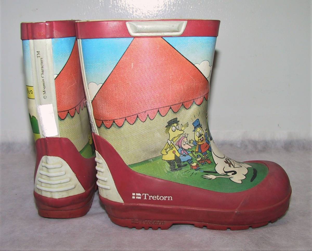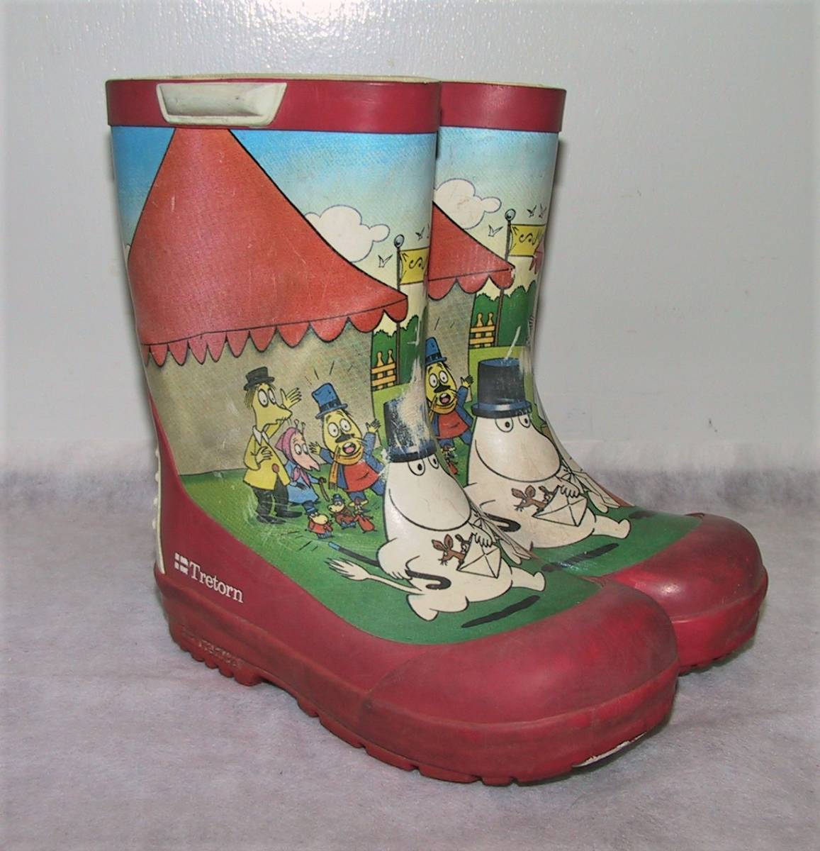 トレトン TRETORNxムーミン Moomin Charactersコラボの子供用レインシューズです。北欧フィンランドで購入しました。子供が気に入って使用していましたので、傷、汚れありますが、まだまだご使用頂けます(外側の破れ部分は補修済です)。子供の名前はアウトソールサイズ表記の下に記載あります。日本では入手しにくいお品になります。サイズ:26/約16㎝、アウトソール最大幅7.5㎝、高さ19㎝、筒周り33㎝。送料は定形外920円、ゆうパック1150円(北海道1740円、沖縄1450円)になります。値下げしました!