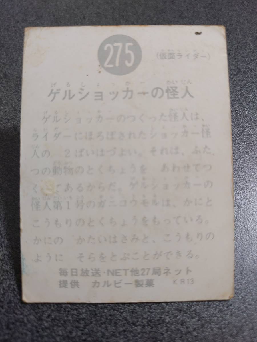 仮面ライダー カード    275番 旧カルビー です。(放送当時品)