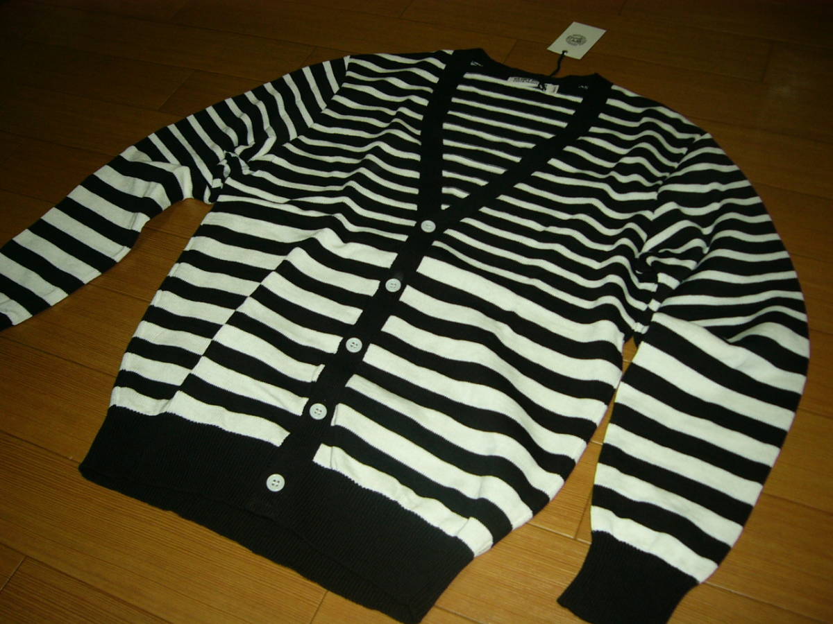 新品 COOTIE クーティー 薄手 ボーダー カーディガン S 黒白 ニット 定価23000円