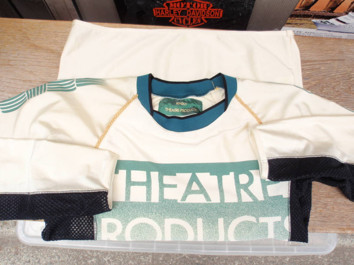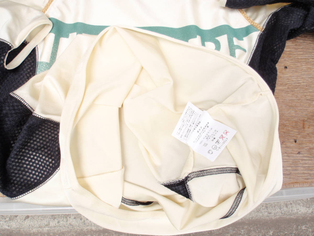 中古品ですので少し使用感と一か所腕に汚れ?がありますが、あまり使って無かったので目立った汚れや傷は無く状態は良いです。日本製シアタープロダクツ(KINGLY)のサイクルジャージタイプなロングTシャツになります。サイズは表記が無いので確かではありませんが、実寸では平置きで身幅43センチ、着丈63センチ、裄丈75センチ位です(表記以上に伸縮します)。正規品。