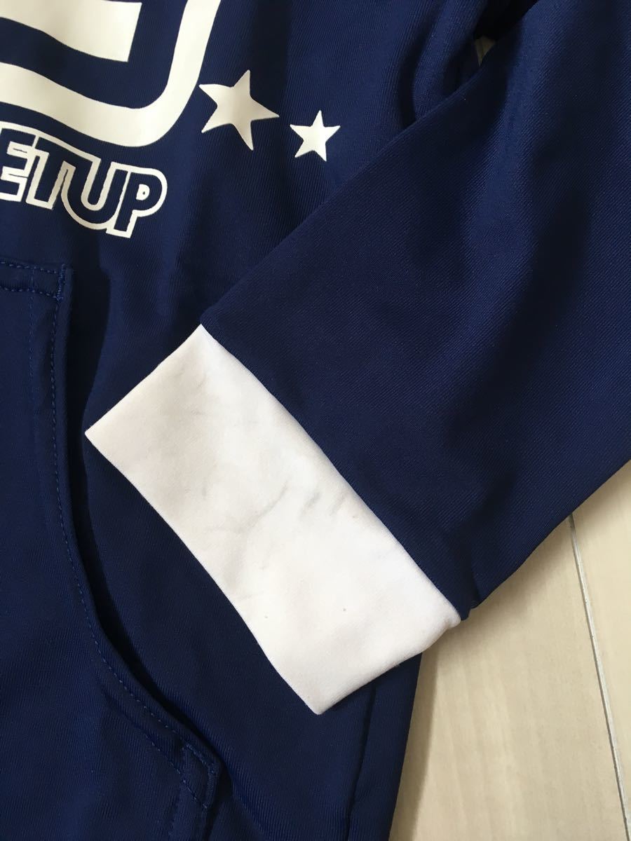 中古品です。袖口に薄汚れあります。素材タグを少し切っています。