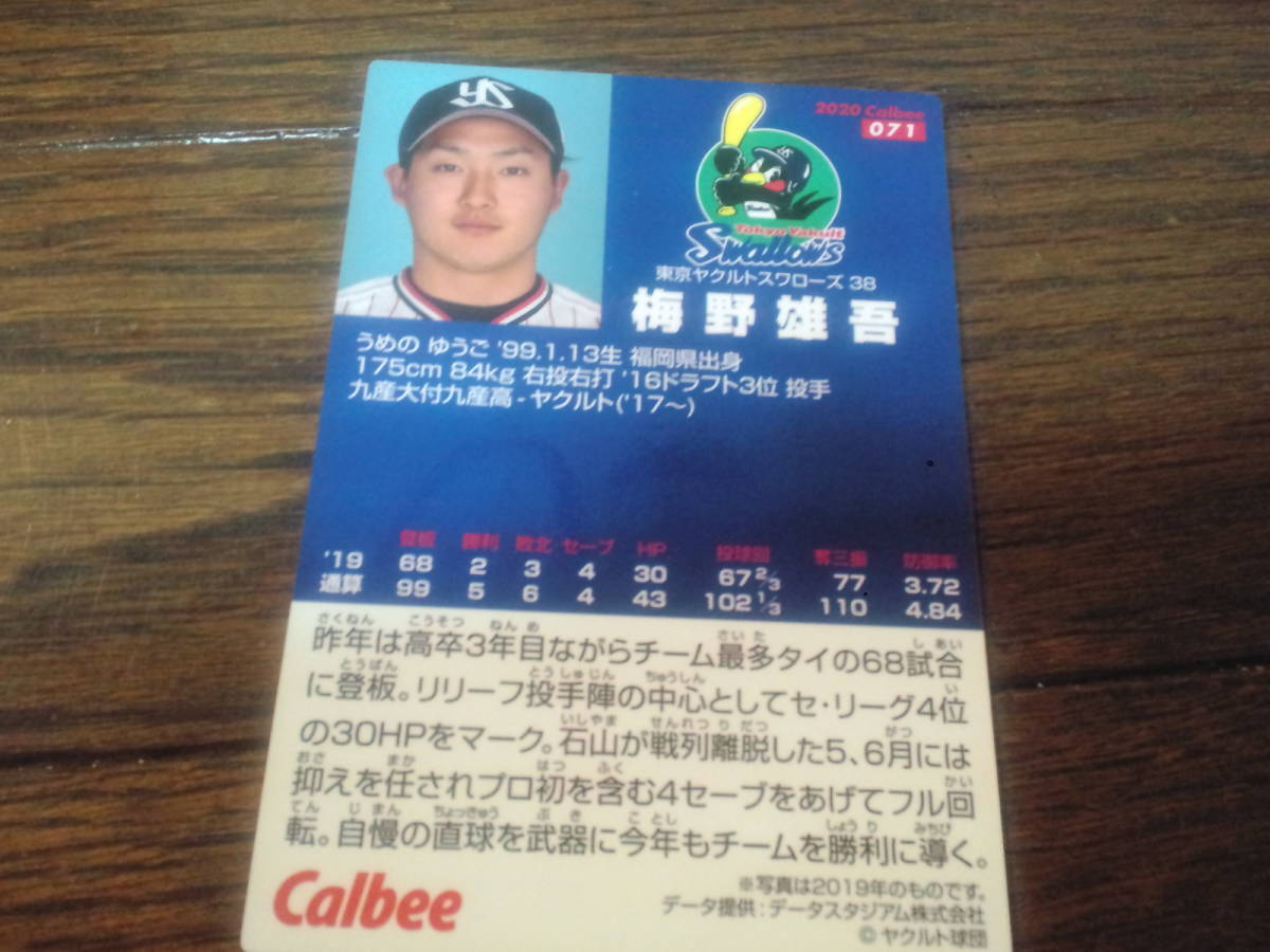 [同梱可]★梅野雄吾(東京ヤクルトスワローズ)★レギュラーカード(071)☆2020年カルビープロ野球カード第1弾