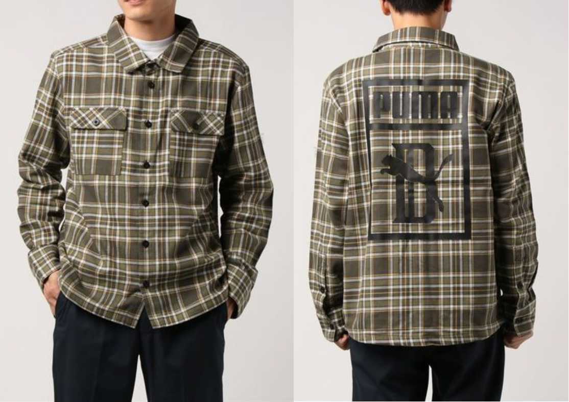 プーマ ビッグショーン コラボ チェックシャツ USサイズXS (S相当) 定価13200円 カーキ系 BIG SEAN CHECK SHIRT ネルシャツ