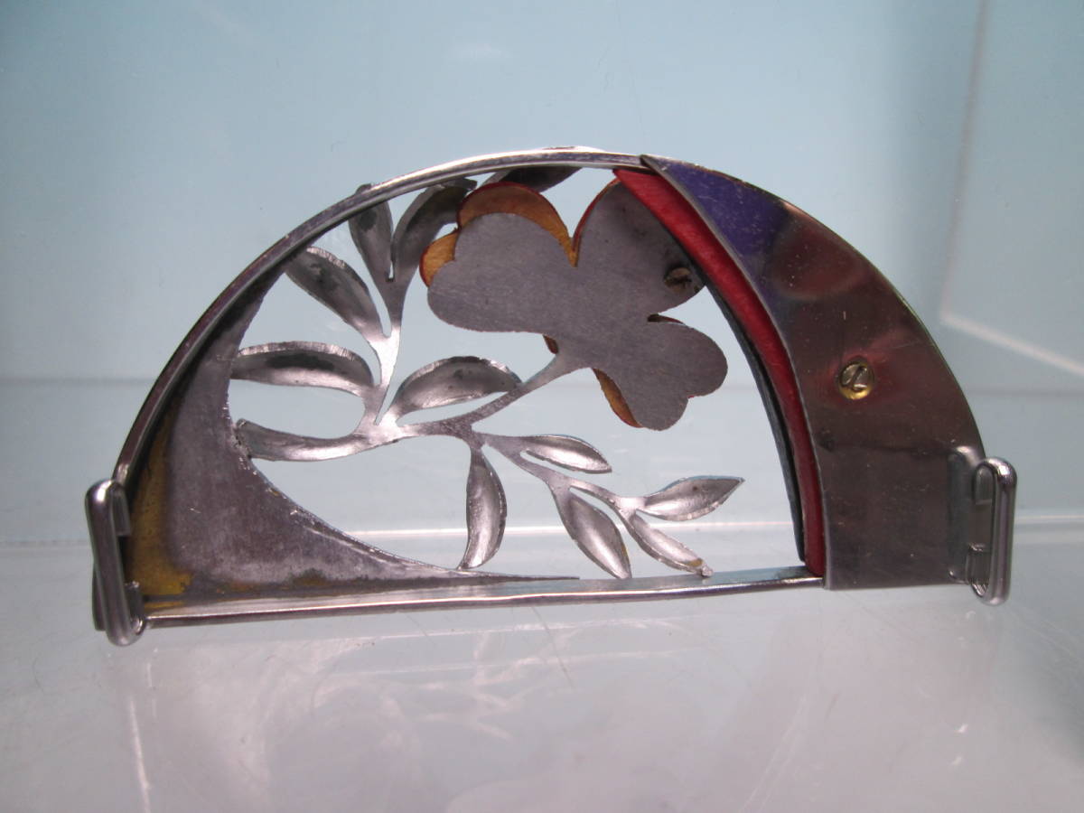 お花の中央にラインストーンが飾られています。赤黒部分は樹脂のようです。刻印は有りません。