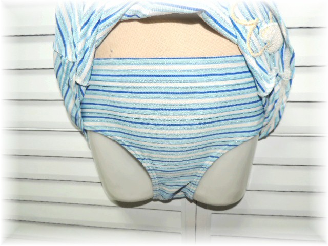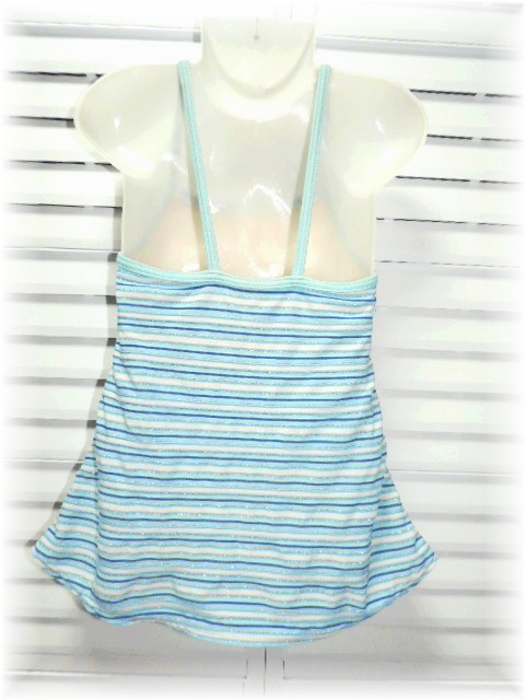 | =委託品= 中古品はクリーニング又はホームクリーニング済です。 新品・未使用品については現状のお渡しとなります。 保管の際のシワがございます。 ■■商 品 ラ ン ク■■ A0新品・未使用品です。 A1訳アリ新品・未使用品です。 B0未使用品に近い中古品です。 B1目立ったシミ・汚れ等が無い一般的な中古品です。 B2使用感(ヨレ)・毛羽立ち等あります。 B3薄め・小さめのシミ・汚れ・傷等があります。 B4目立ったシミ・汚れ・傷等があります。 B5ジャンク品です。 *注:感じ方には個人差がございます。 【レベル:B2】 使用感があります。 肩ひもの若干のゆるみがあります。 ≪タグ表示≫ サイズ:110cm ≪平置きサイズ≫ 多少の誤差はご容赦下さる様お願いします。 身幅:約26cm ウェスト:約24cm ヒップ:約26cm 着丈:約32cm(背側中央部) ≪素材≫ ポリエステル92% ポリウレタン8% ≪色・柄≫ ライトブルー×ブルー・ホワイトボーダー(ラメライン入り) 肩ひもの調整不可 ≪お願いとご注意≫ ・新品・未使用品でも一度は人手に渡った物ですので完璧を求める方はご入札をご遠慮下さい。 ・お振込み手数料はご負担下さいます様お願いします。 ・仕事・家事の合間で作業をしておりますのでお急ぎの方のご入札をご遠慮下さい。 ・ご入金確認のタイミング(夜の確認)により発送が1~2日程遅れる場合がございます。 ・頂いた個人情報はお取引後すみやかに削除させて頂きます。 ・土日祭日の発送は郵便局都合によりお休みします。 ・フラッシュやPC環境により色が違う場合がございます。 ・喫煙者おりません。ペット(猫)がおります。 ・評価はご指示がない限り商品受け取り完了のお知らせ後にさせて頂いております。 ≪不要の方はお手数おかけしますがメッセージをお願いします。≫ | |||