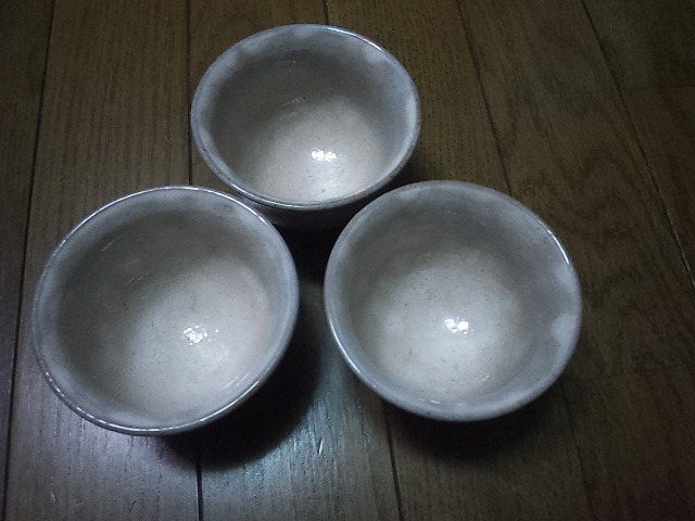 ..陶器 湯呑 3点 直径8.8cm、高さ6cmくらい 中古 良品