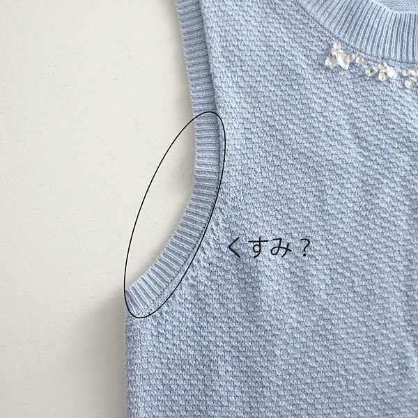 ・右襟に薄い汚れ、襟や脇付近にややくすみがあります。