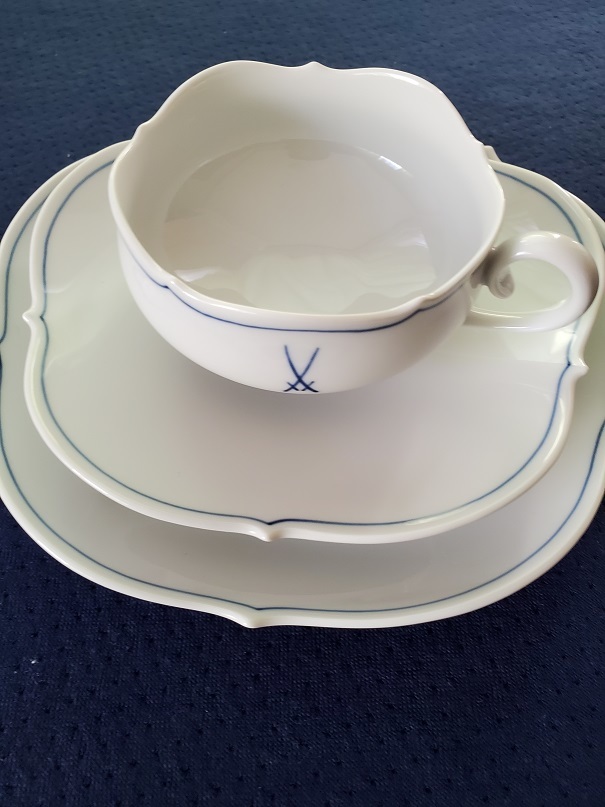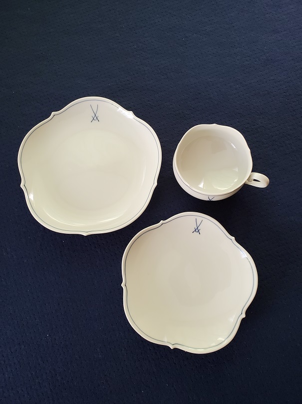 未使用 新品 マイセン 双剣マーク ティーカップ ソーサー トリオ デザートプレート