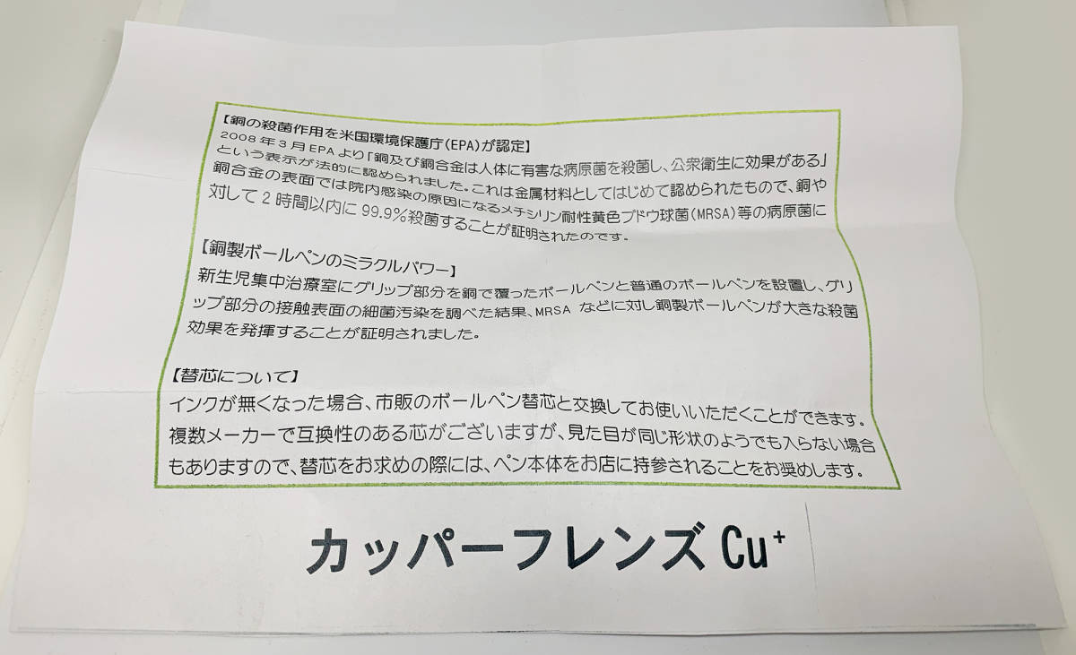 即決★新品 非売品 抗菌銅 ボールペン キャップ式 Antimicrobial Copper Cu+ 認定 銅製 CU カッパー フレンズ ケース有 日本メディカルGPO