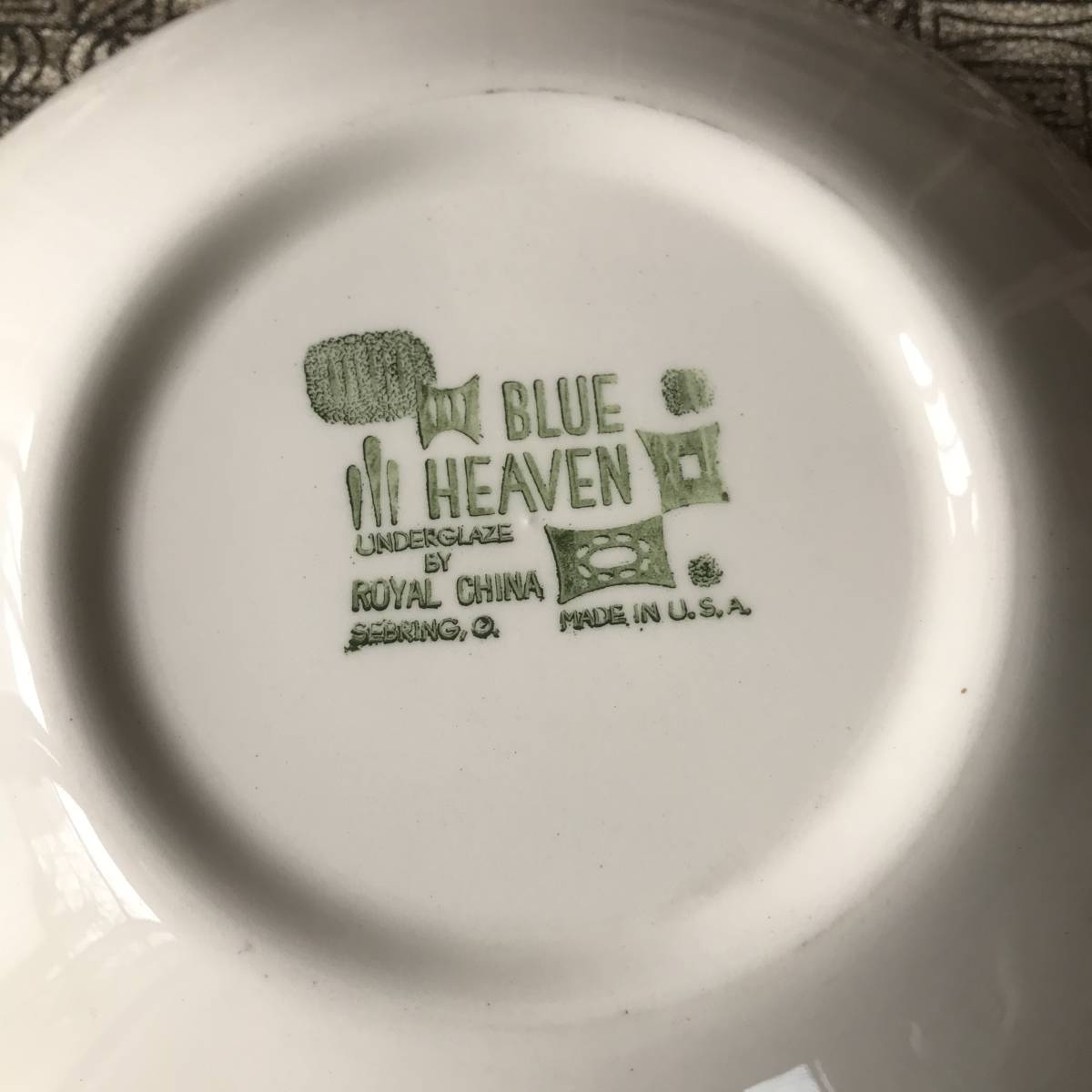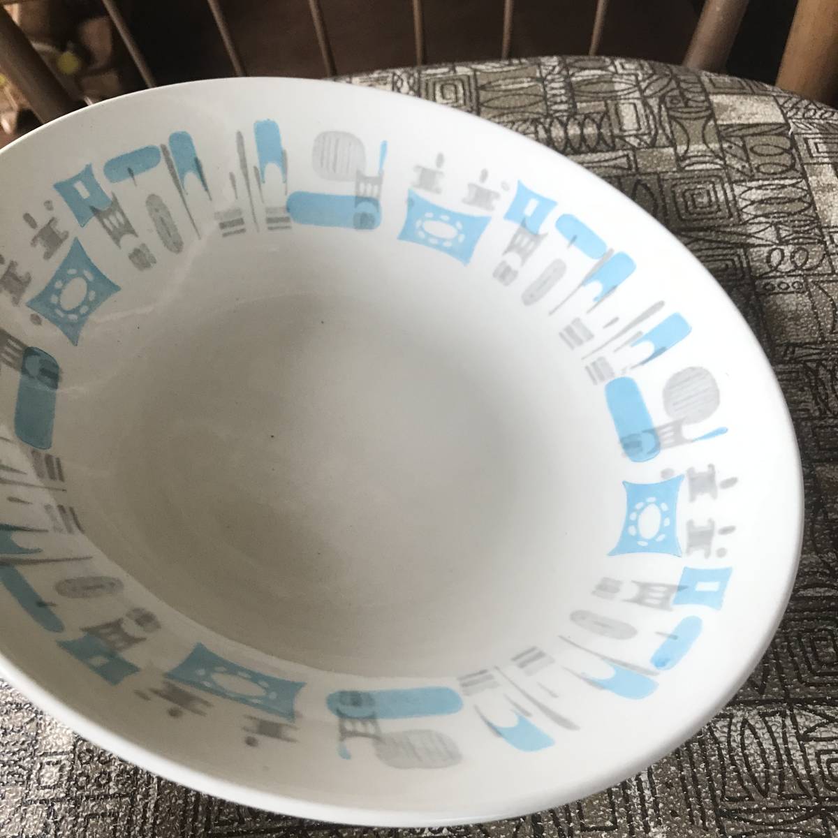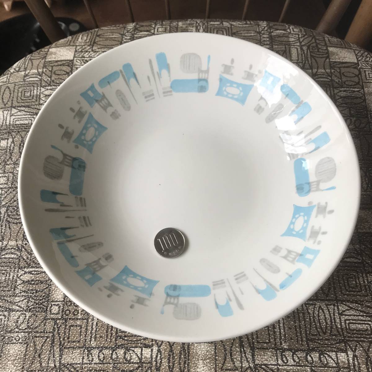 の食器になります。ブルーヘブン!アメリカミッドセンチュリーの貴重な食器です。サイズは直径約22.5cm、高さ約5cm、一緒に写してる100円玉と比較参照して下さい。カケやヒビなどはなく程度は良好です。古いものですので神経質な方はお控え下さい。ビンテージにご理解ある方 よろしくお願いします。