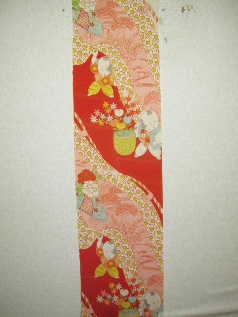 517=9★赤ピンク*唐子*牡丹*立花*梅*菊*紅葉*萩*正絹*古布はぎれ★アンティーク