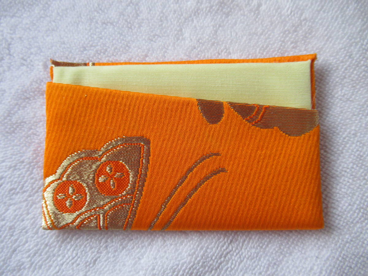 手作り 金襴カードケース 定期入れ 保険証入れ (橙に金蝶)