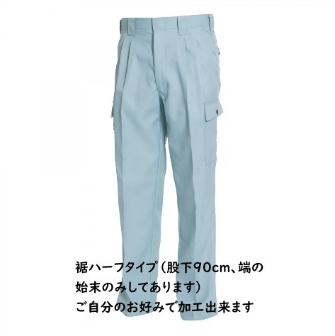 「プレミアム裏綿」。ワンランク上のベーシックユニフォーム。 ご自身の足の長さに合わせて裾上げ加工が出来る「裾ハーフ」商品です ★色:53グリーン ★サイズ:ウエスト88cm、股下裾ハーフ(股下90cm、端の始末のみしてあります) ★素材:プレミアム裏綿(導電繊維混入) ★混率:ポリエステル90% 綿10% | |