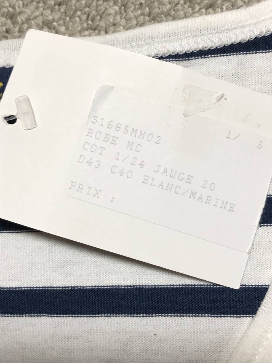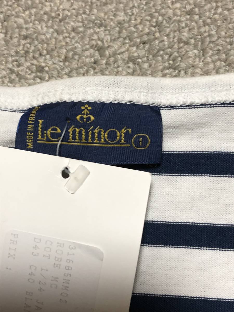 フランス製 ルミノア Le minor  コットン Uネックワンピース 白×紺 ホワイト ダークネイビー 半袖