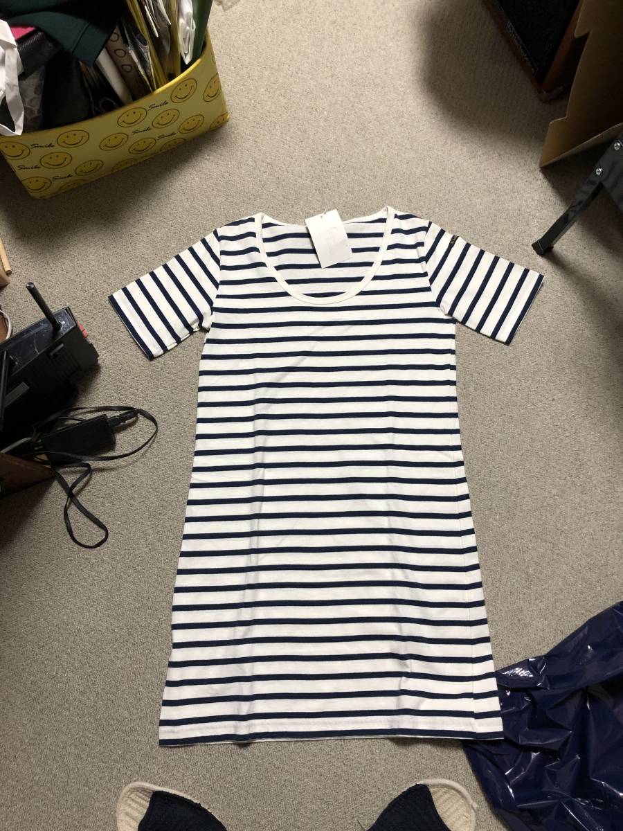 フランス製 ルミノア Le minor  コットン Uネックワンピース 白×紺 ホワイト ダークネイビー 半袖です。