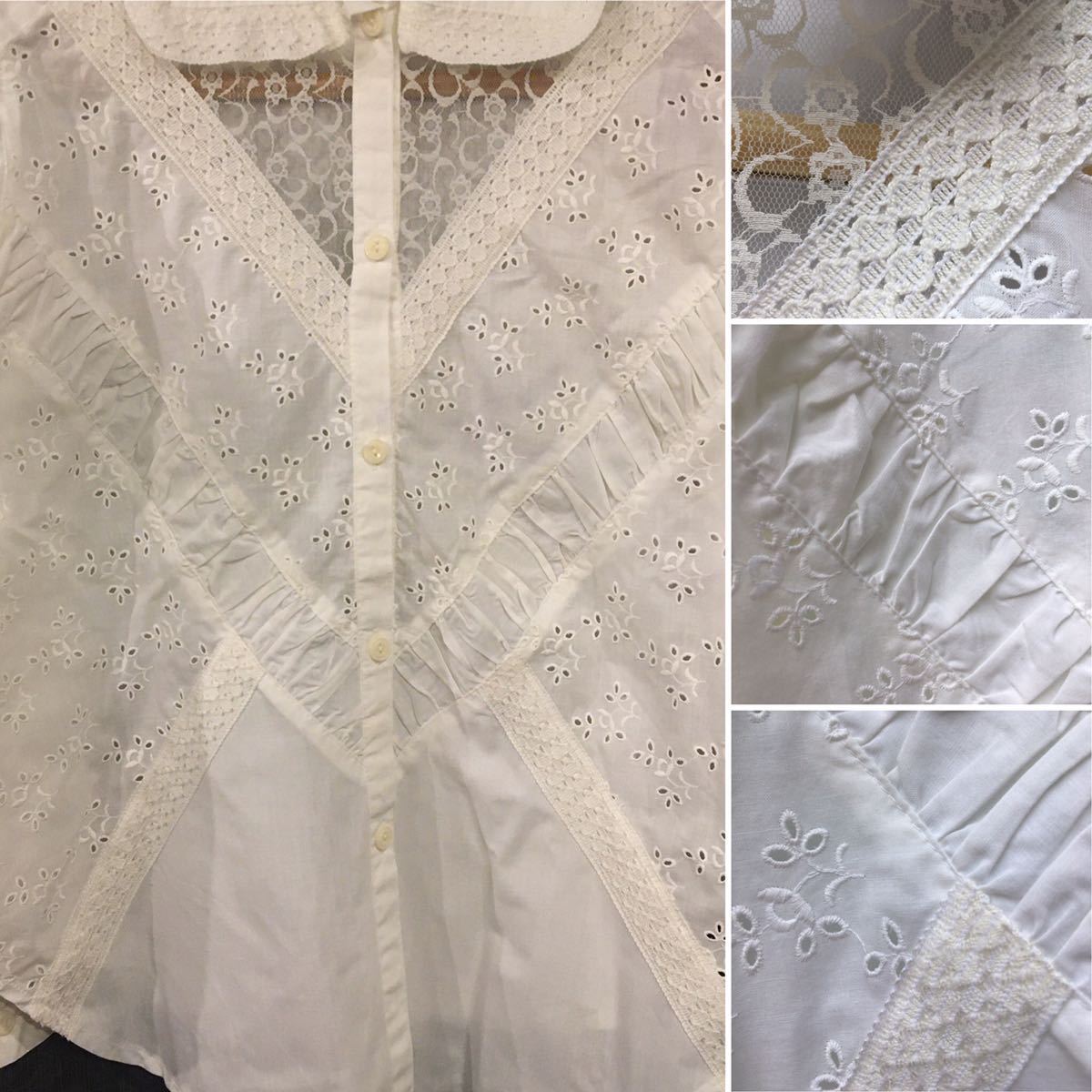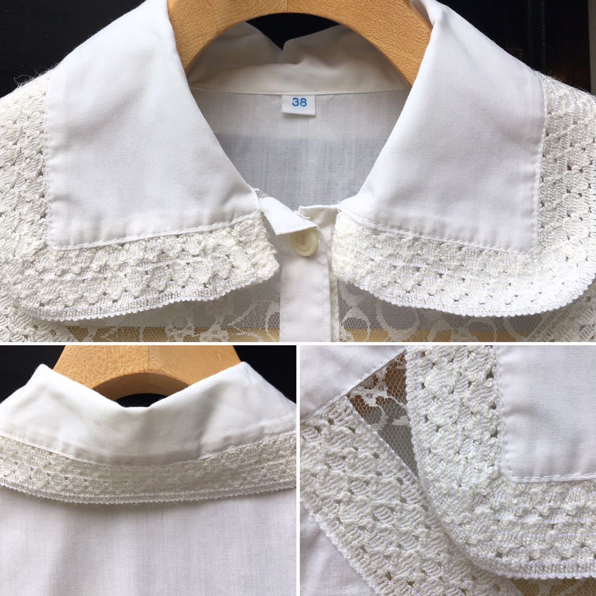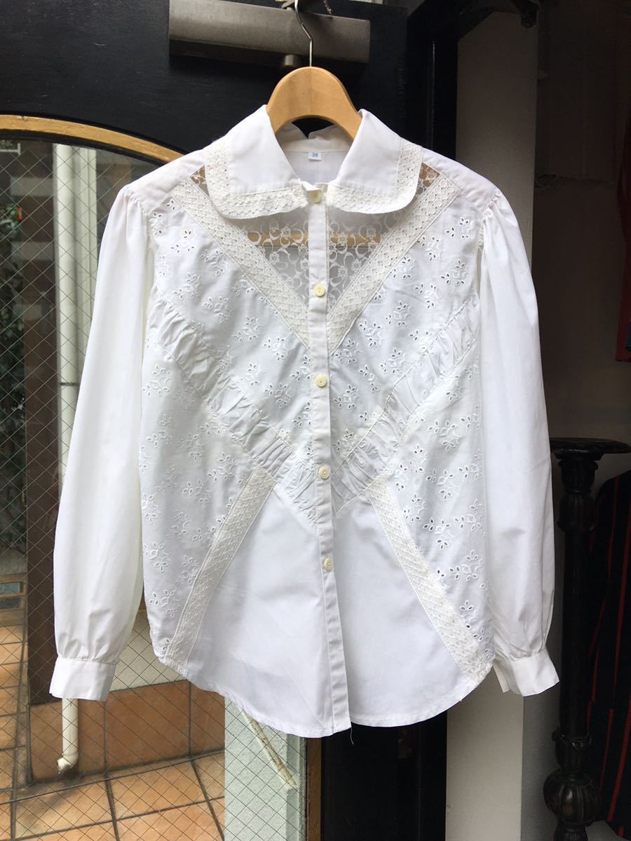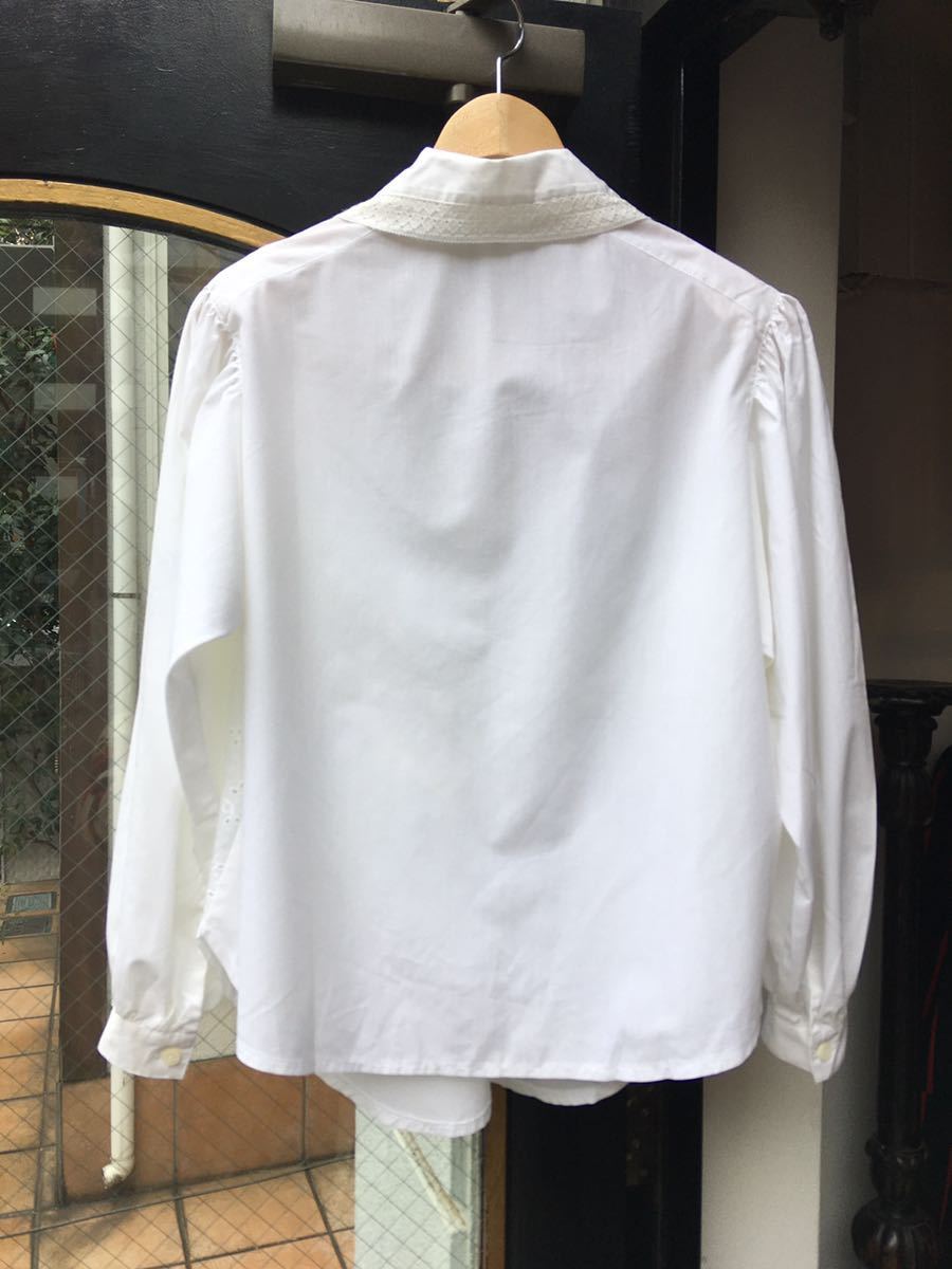 ヨーロッパvintage 80s パフスリーブレースブラウス