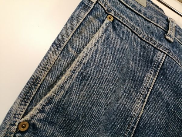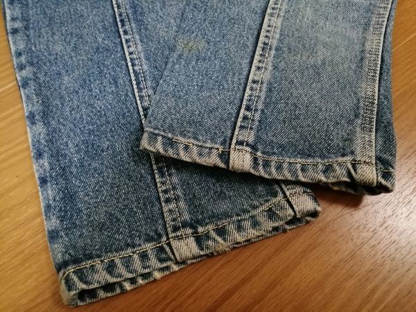 ポケット口や裾に擦り切れのダメージあるジーンズです。