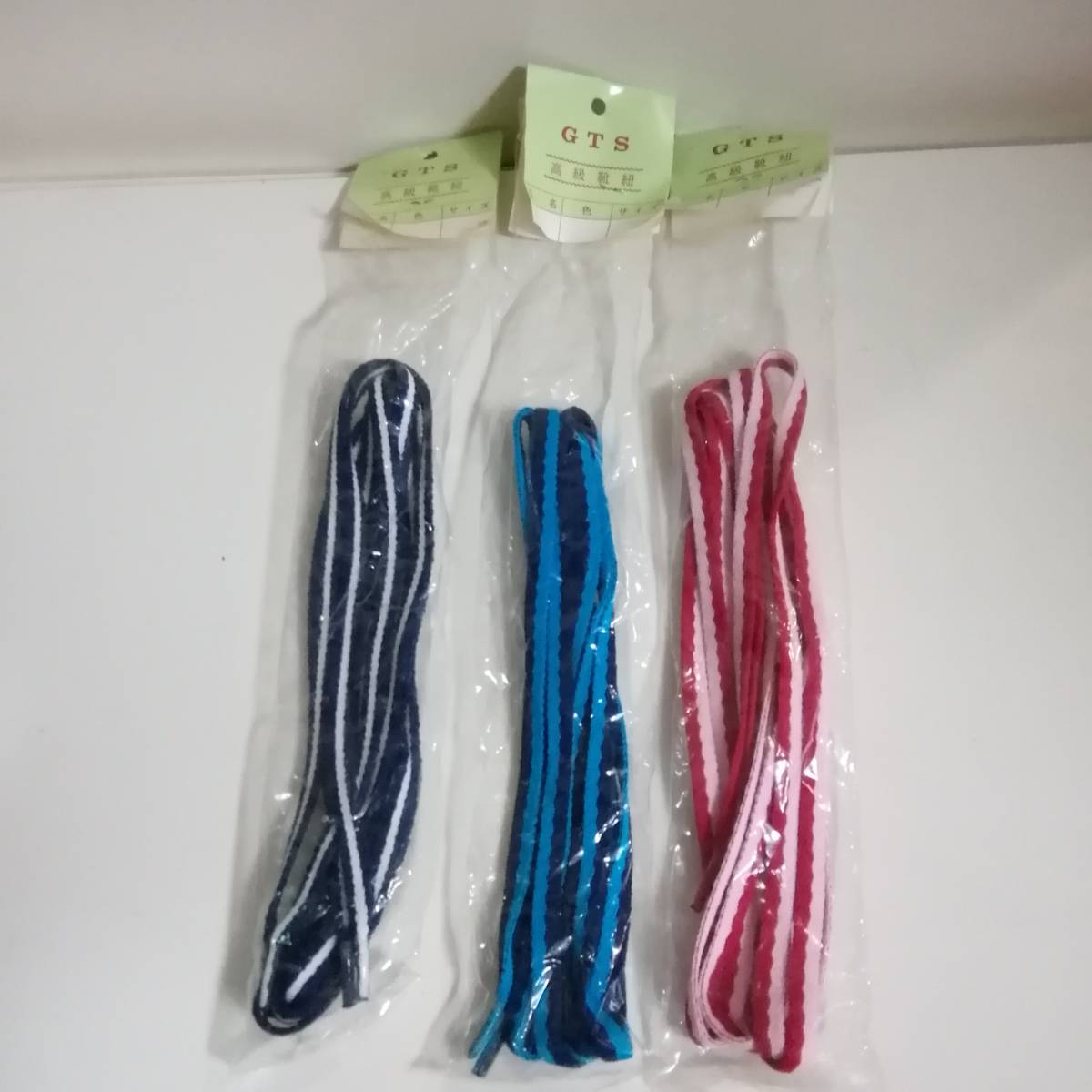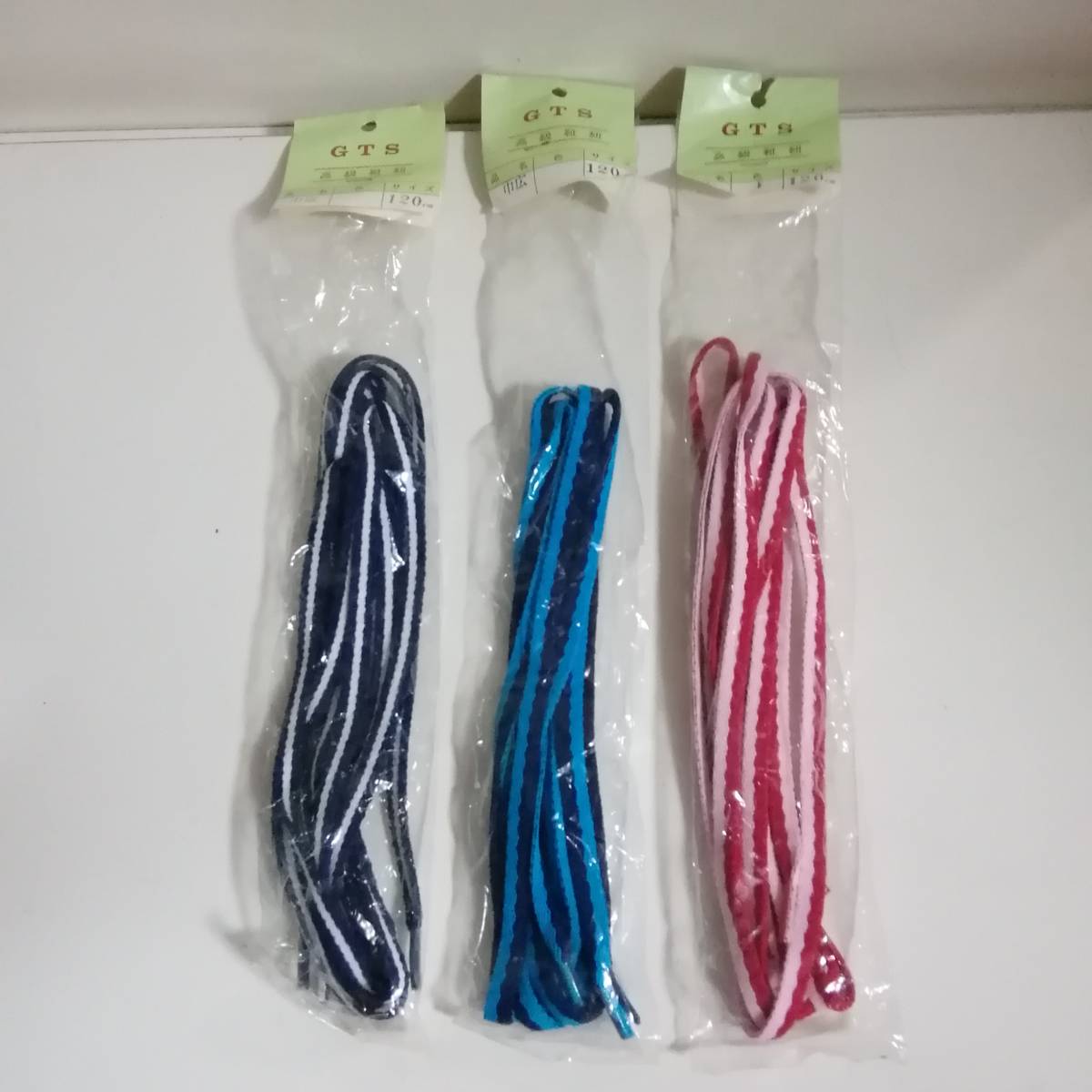 GTS シューレースオリジナル「2色コンビネーション/2パターン/120㎝」90年代新品デッドストック/3色セット/日本製/パック汚れ傷み/JM-4
