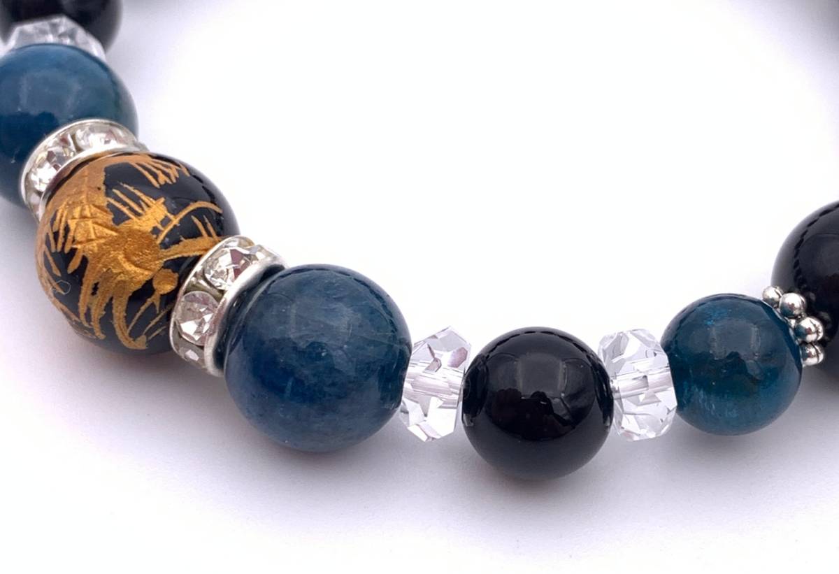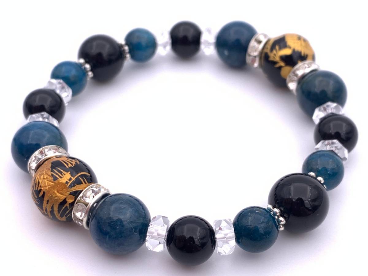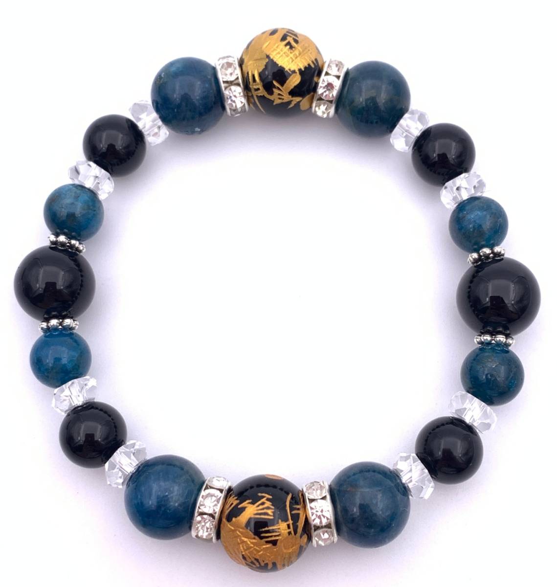 天然石金彫りオニキス青龍12mm玉&アパタイトのブレスレット