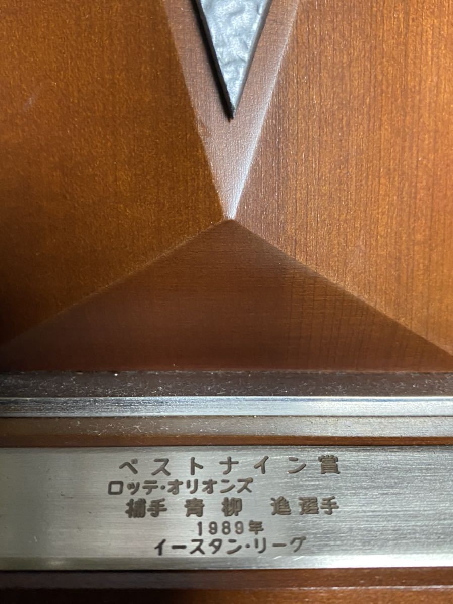 ロッテオリオンズ 青柳進捕手 1989年 NPB イースタン・リーグ ベストナイン 受賞盾 縦25.5㎝×横18㎝