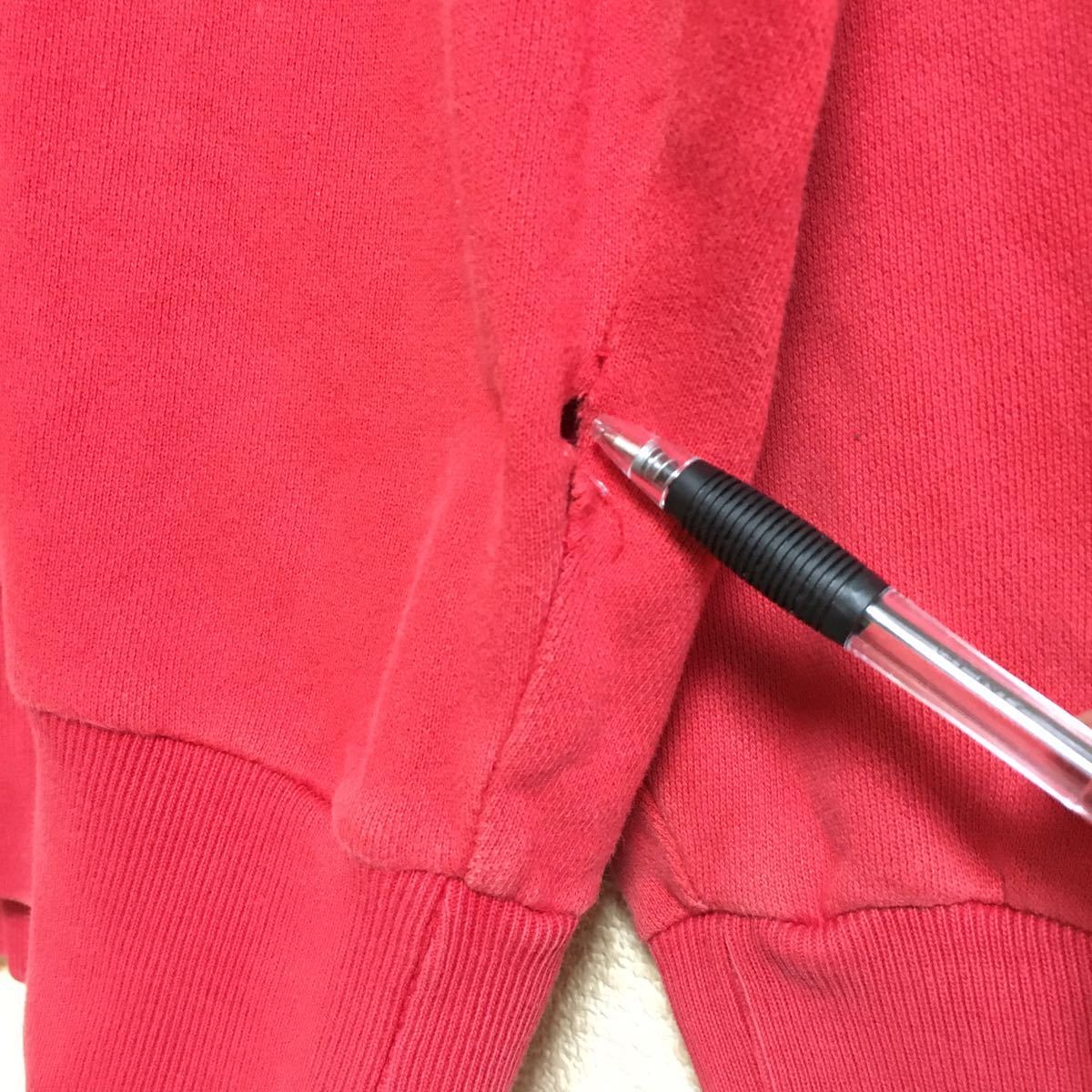 多少の色褪せ、左サイドに1.5cm程度の糸抜け、右袖に細かなほつれが見られますが、着用時はほぼ分からないと思います。