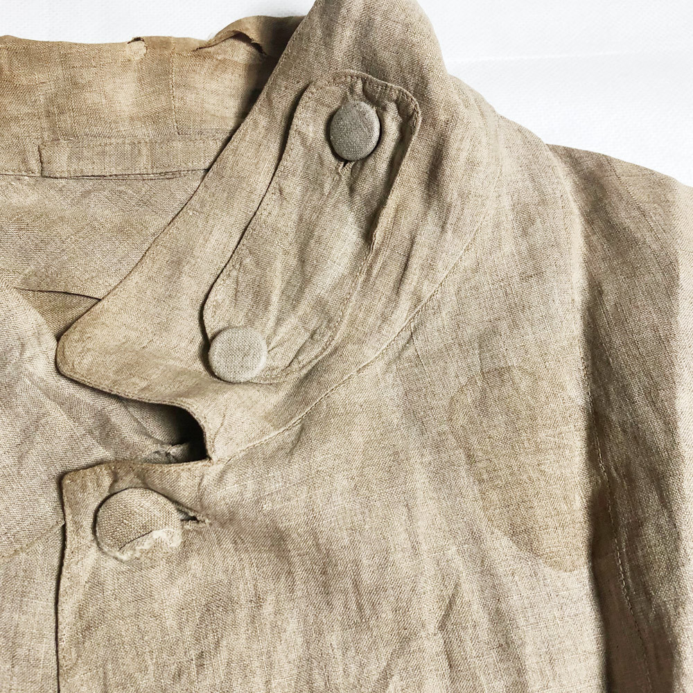 状態は襟裏に若干擦り切れあり、被せボタンに若干破れがある箇所あり、一番下のボタンのみ欠損、その他大小様々なシミや色褪せなどもございますが、120年以上前の洋服であることを考慮すれば、まだまだ着用可能な素晴らしいグッドコンディションです。