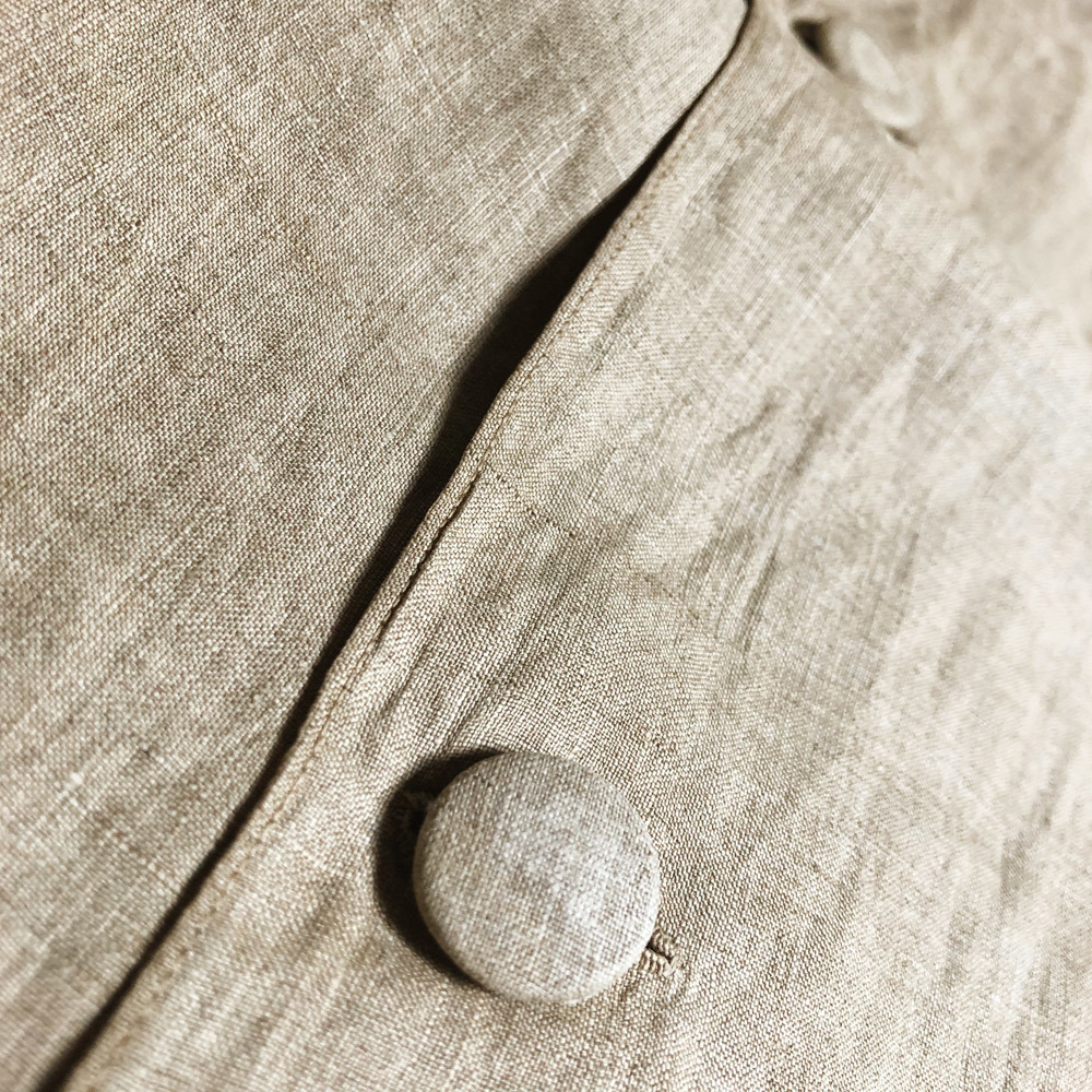 現代では滅多にお目にかかれない程、度詰で独特の弾力とシャリ感のある質感のリネン素材で、30~40年代のシャンブレーリネンとは段違いの打ち込みの細かさを誇る、薄手なのにハリとコシのある生地感は圧巻!