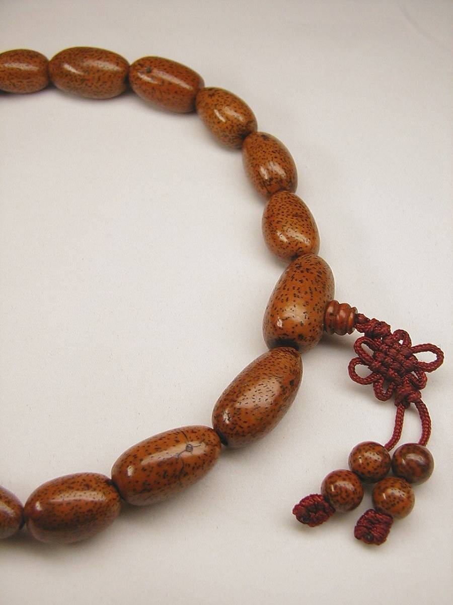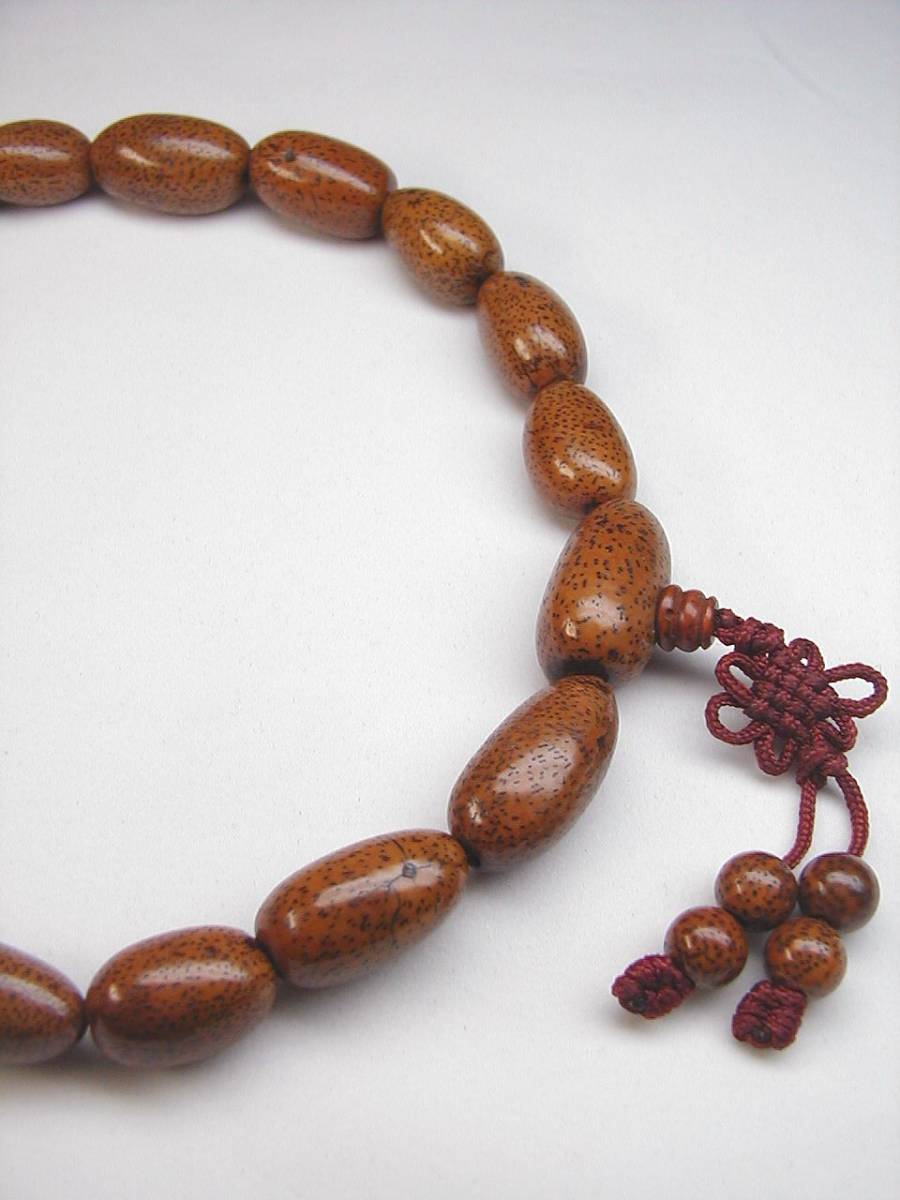 ●商品サイズ:主玉の最大珠玉の直径約14.5ミリ、最大珠玉の長さ約27.5ミリです。(他の珠のサイズもほとんど同大)、親玉のの直径約16ミリ、最大珠玉の長さ約28ミリ、数珠外周約480ミリ(共に最大値)、重さ約60グラムです。(Vista My Docms2009.1.10)