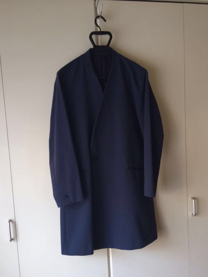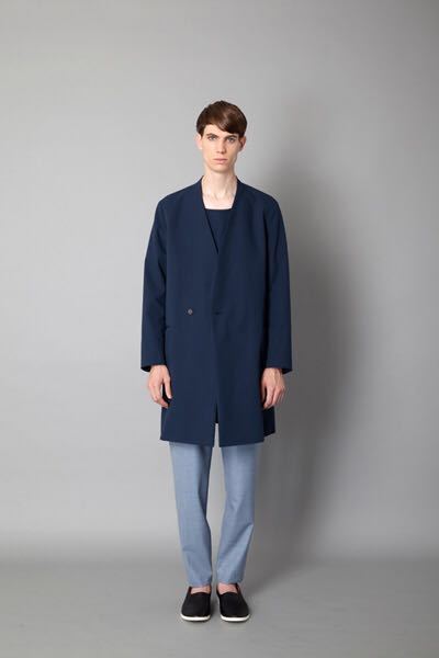 エトセンスらしい絶妙な緩さと細さのバランスで、スキニーパンツなどとは相性抜群です。ノーカラーなので首回りはすっきり、沿う様に立ち上がった襟がより洗練させた印象を与えます。