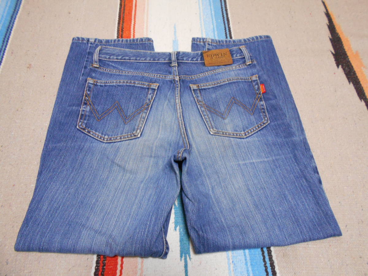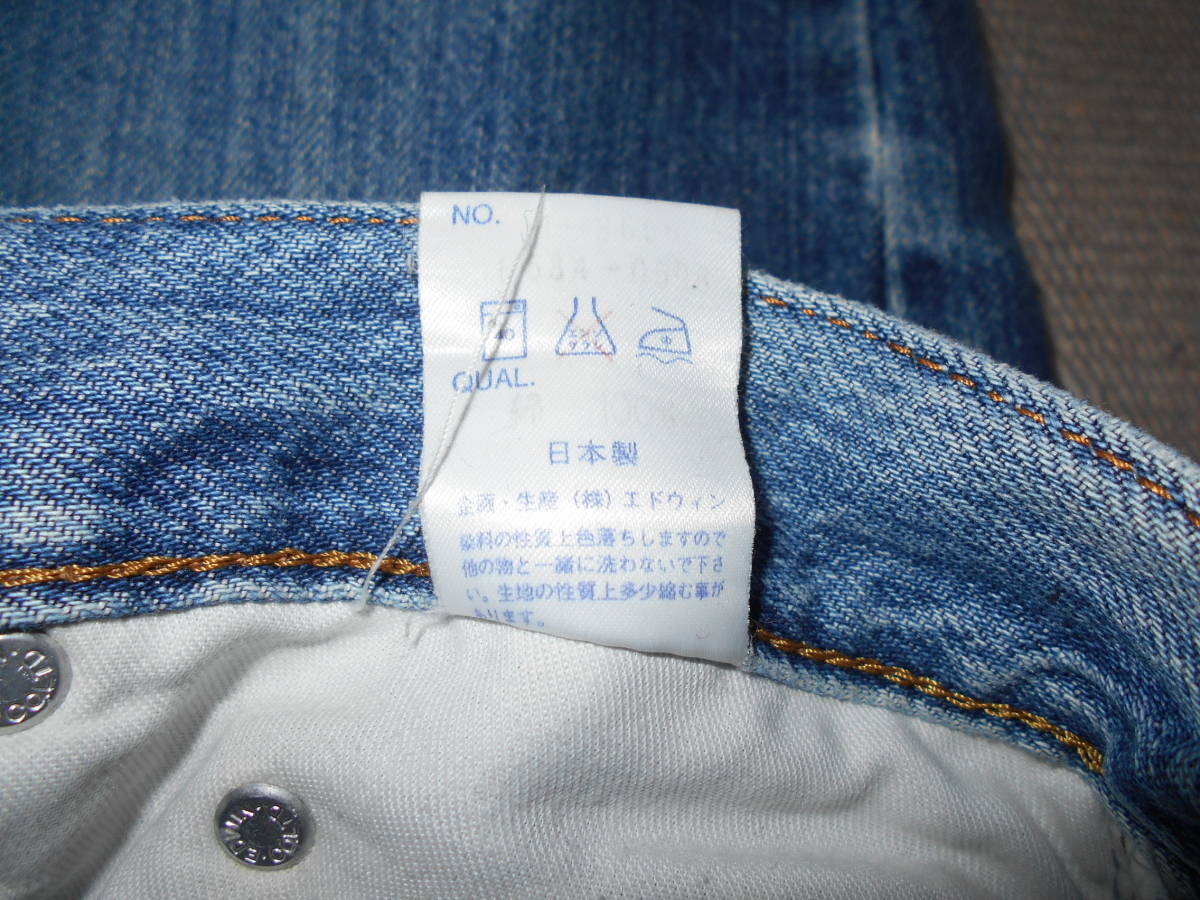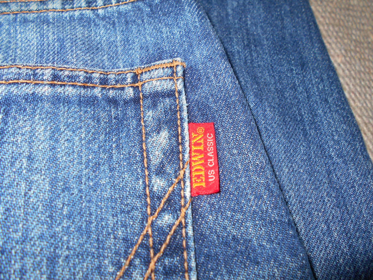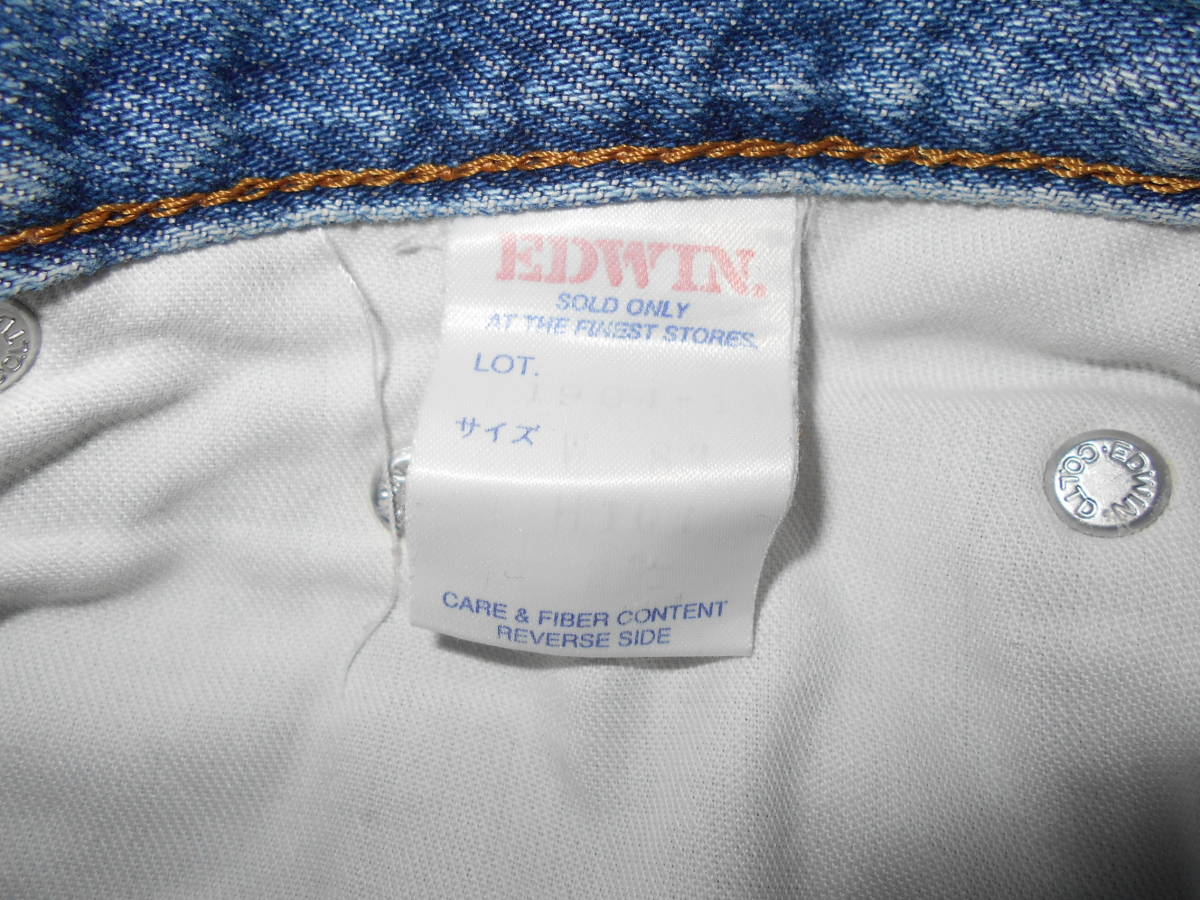 「EDWIN」 US CLASSIC 特有 ビンテージ縦色落ちインディゴデニム素材、随所の縫製やリベット補強の細部までしっかりした作り MADE IN JAPAN