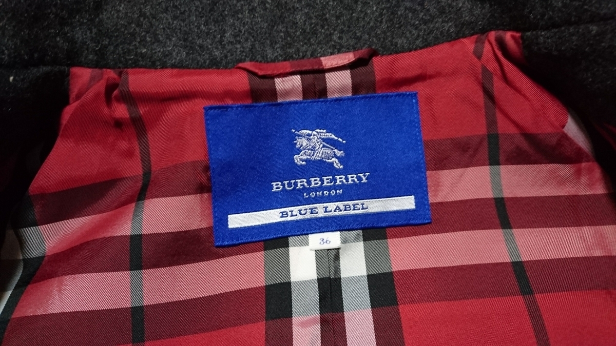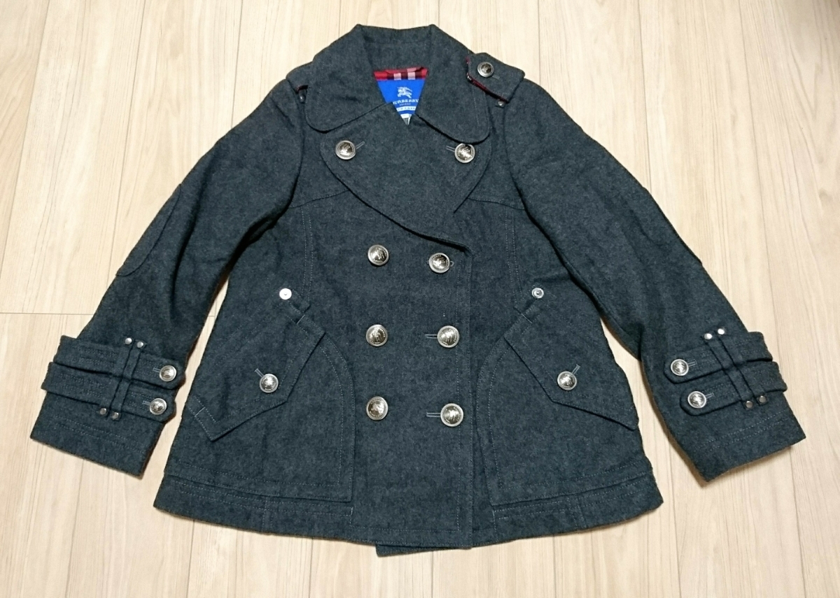 極美品 バーバリー ブルーレーベル BURBERRY BLUE LABEL Pコート メルトン 36