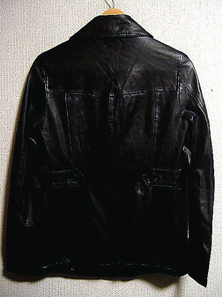 UNITED COLORS OF BENETTON. フェイクレザージャケットです。◆色は黒。とても洗練されたデザインですごくかっこいいアイテムです!薄手の一枚地ですので春先にもピッタリですよ。◆サイズは38で着丈約63.5cm・肩幅約38.5cm・袖丈約61.5cm・身幅約42cmです。◆USEDですが状態は良好です!◆