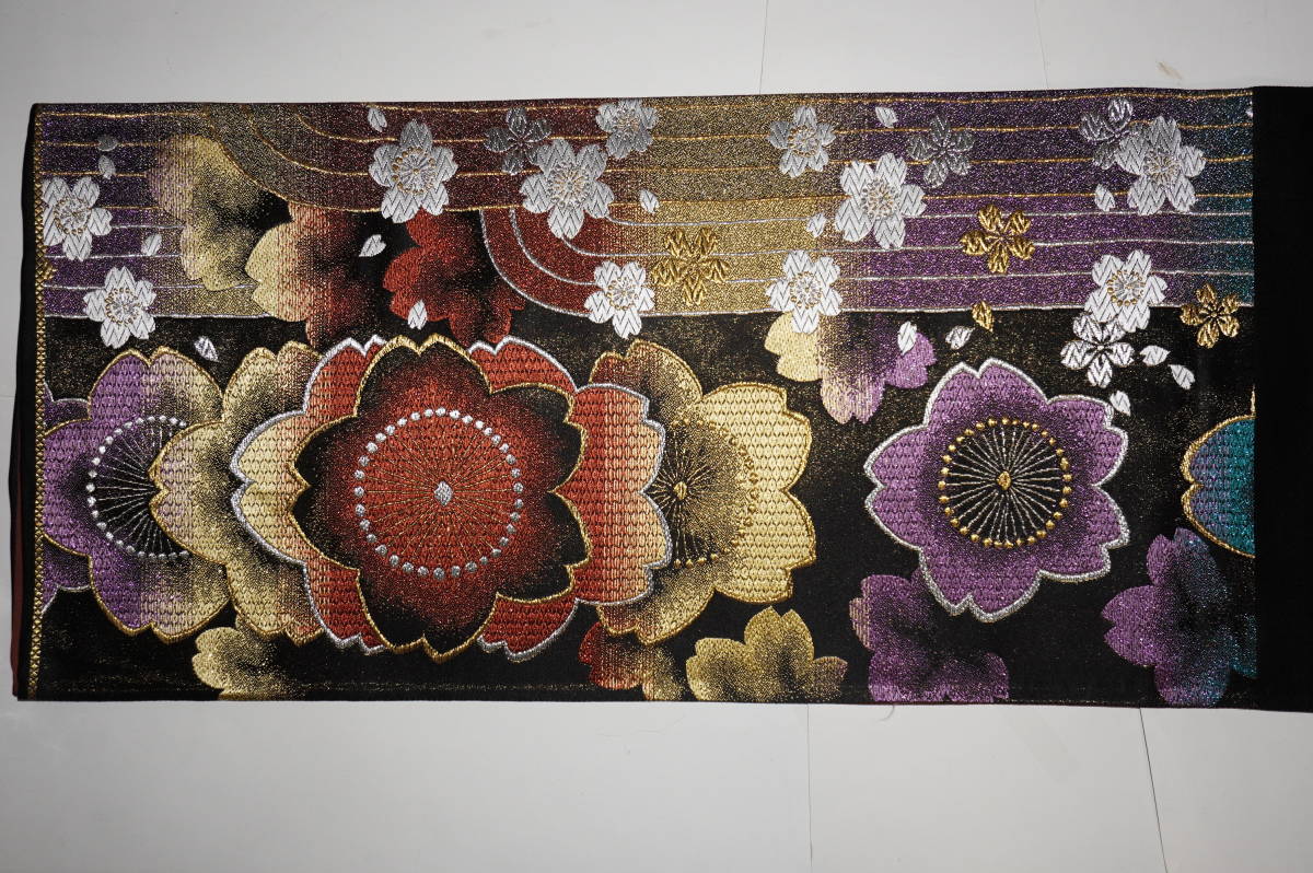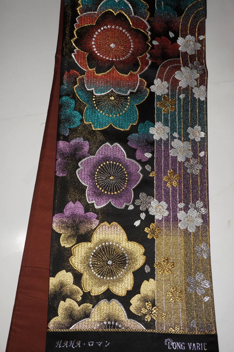 仕立てつき振袖用帯(ロング) 西陣6通柄袋帯(通常帯より約4寸長い) 絹100%金属糸等使用 黒色(裏地茶系) 新品み仕立て品ですがこのお値段で仕立てつきで、納品です。なお、最終日まで待っていただかなくとも、入札した時点でオークションは終了し落札者となります。お値段的にもお安く設定いたしましたお買い得品です(西陣帯です)。もちろん綿芯込みの仕立て付きですが、仕立てなしの場合でも金額は変わりません。