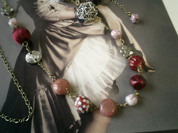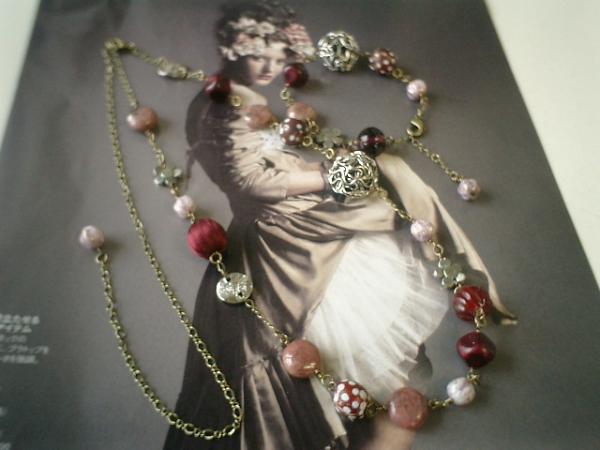 ひっそりアラビアン・ナイト(?)ちょっと東洋バージョンのネックレスとブレスレットの2本セットです♪シックで大人っぽいモーヴピンクとワイン系でまとめました♪ロードナイトは10ミリのコイン型、ドットのトンボ玉は10ミリと9ミリ、18ミリのワイヤービーズ、14ミリのサテンボール、10ミリのお花のチャーム、12ミリのベネチアンビーズ、12ミリのメタルスパン、10ミリのビンテージビーズ、8ミリのチェコビーズをランダムに合わせました♪ちょっぴりアラビアン・ナイトしています♪長さは全長75センチ位で調節自由です♪2連にしたり、ぐるぐる巻いてブレスレットにしても可愛いです♪ブレスレットは18ミリのワイヤーボール、10ミリのドットのトンボ玉、10ミリのお花のチャーム、10ミリのコインのロードナイト、10ミリのベネチアンビーズをあわせています♪長さは全長22センチ位で調節自由です♪どちらも落ち着いて華やかな雰囲気です♪シンプルで飽きのこないいつまでも着けられるデザインを考えて作りました!ハンドメイドをご理解頂いてノークレーム、ノーリターンでお願いします