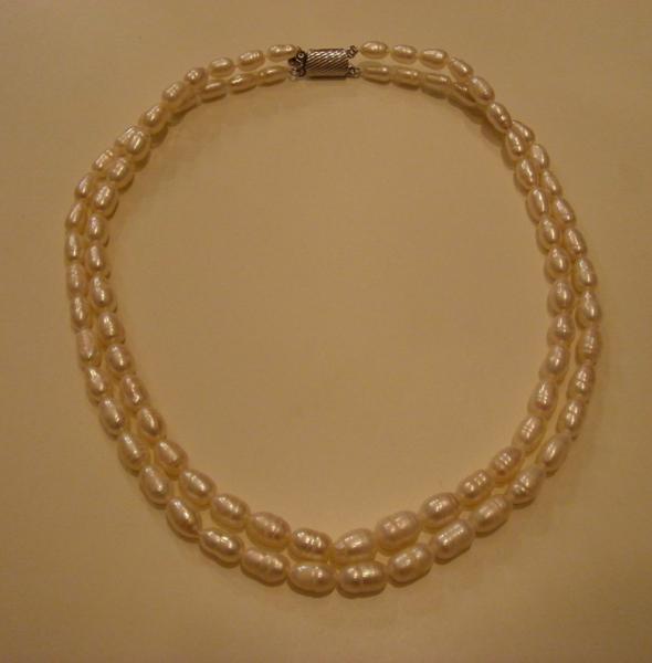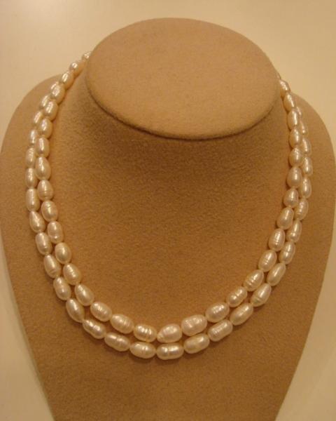 PL205:SV 淡水真珠(ライスパール) 2連ネックレス