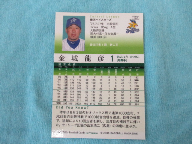 ★BBM 2008★1st Version 〔132 金城龍彦 横浜ベイスターズ〕トレカ♪