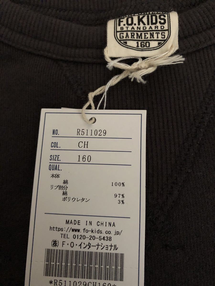F.O.KIDS エフオーキッズ 裏起毛 ガゼットトレーナー 160cm チャコール です。