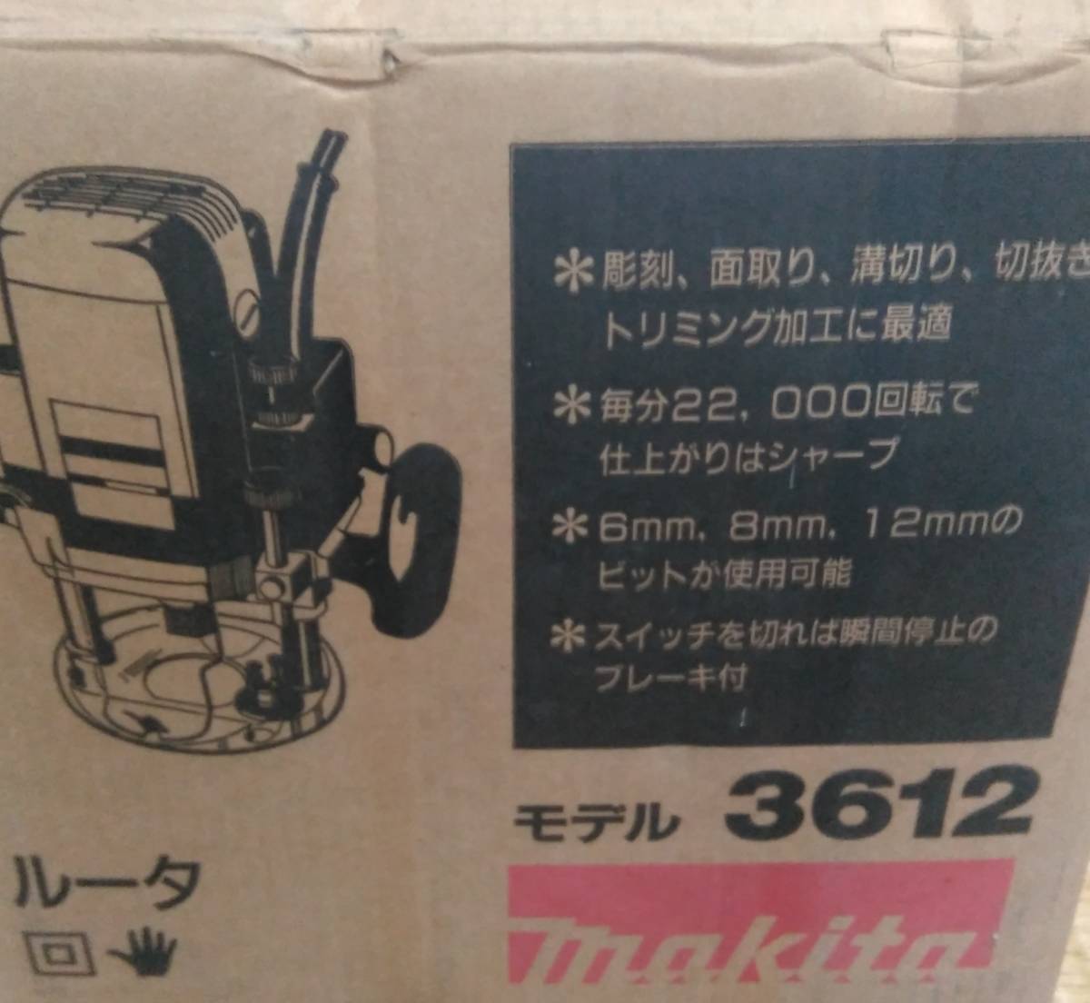 マキタ ルータ モデル3612 6mm 8mm 12mmのビットが使用可能。彫刻や面取りに